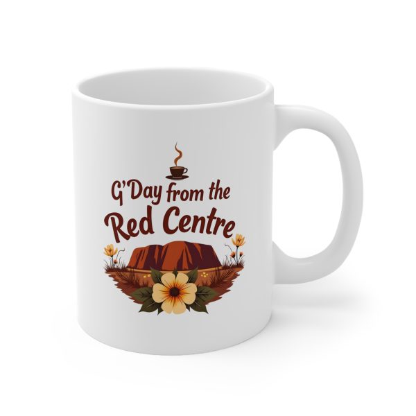 This design combines iconic Aussie scenery with a cozy coffee moment—perfect for gifting or keeping as a reminder of the red heart of the country.