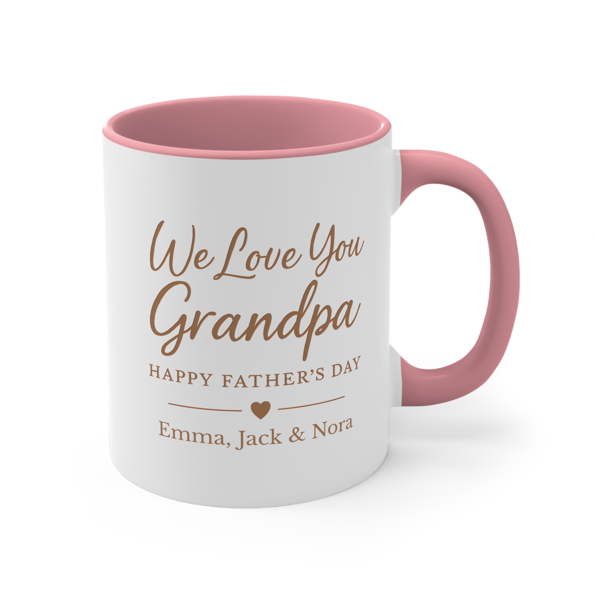 Personalised grandpa mode activated coffee mug. 11oz ceramic mug with custom names and colourful handle options.