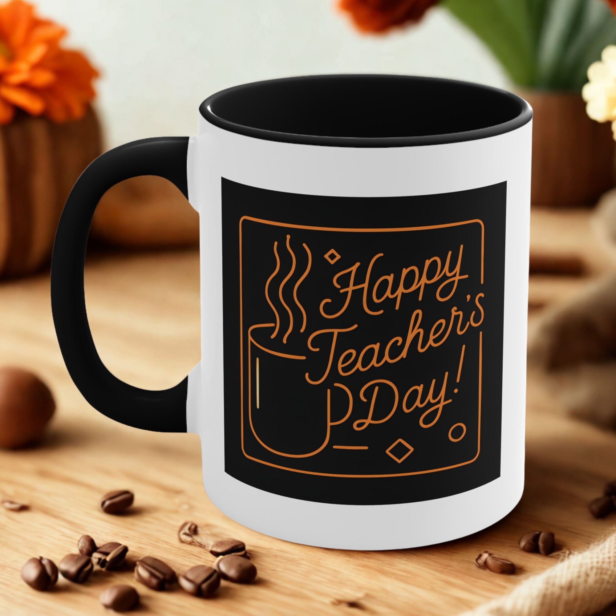Show your appreciation for the educators who inspire every day with this Happy Teacher’s Day Mug. Designed with a simple yet elegant line-art coffee cup and warm orange typography, it’s a stylish way to say thank you to the teachers who make learning meaningful.