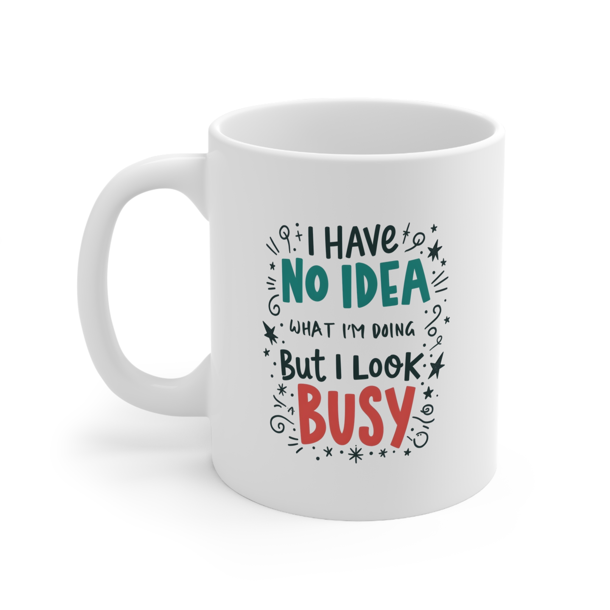 “I Have No Idea What I’m Doing” mug with playful doodles—perfect for chaotic minds who look productive.