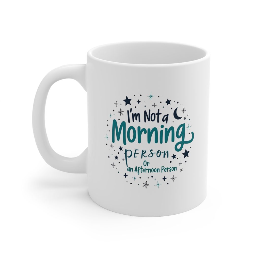 For anyone who greets both sunrise and meetings with a yawn—this witty mug gets you. Featuring the phrase “I’m Not a Morning Person. Or an Afternoon Person” in a playful handwritten font, it’s perfect for those who run on caffeine and sarcasm (with naps in between).