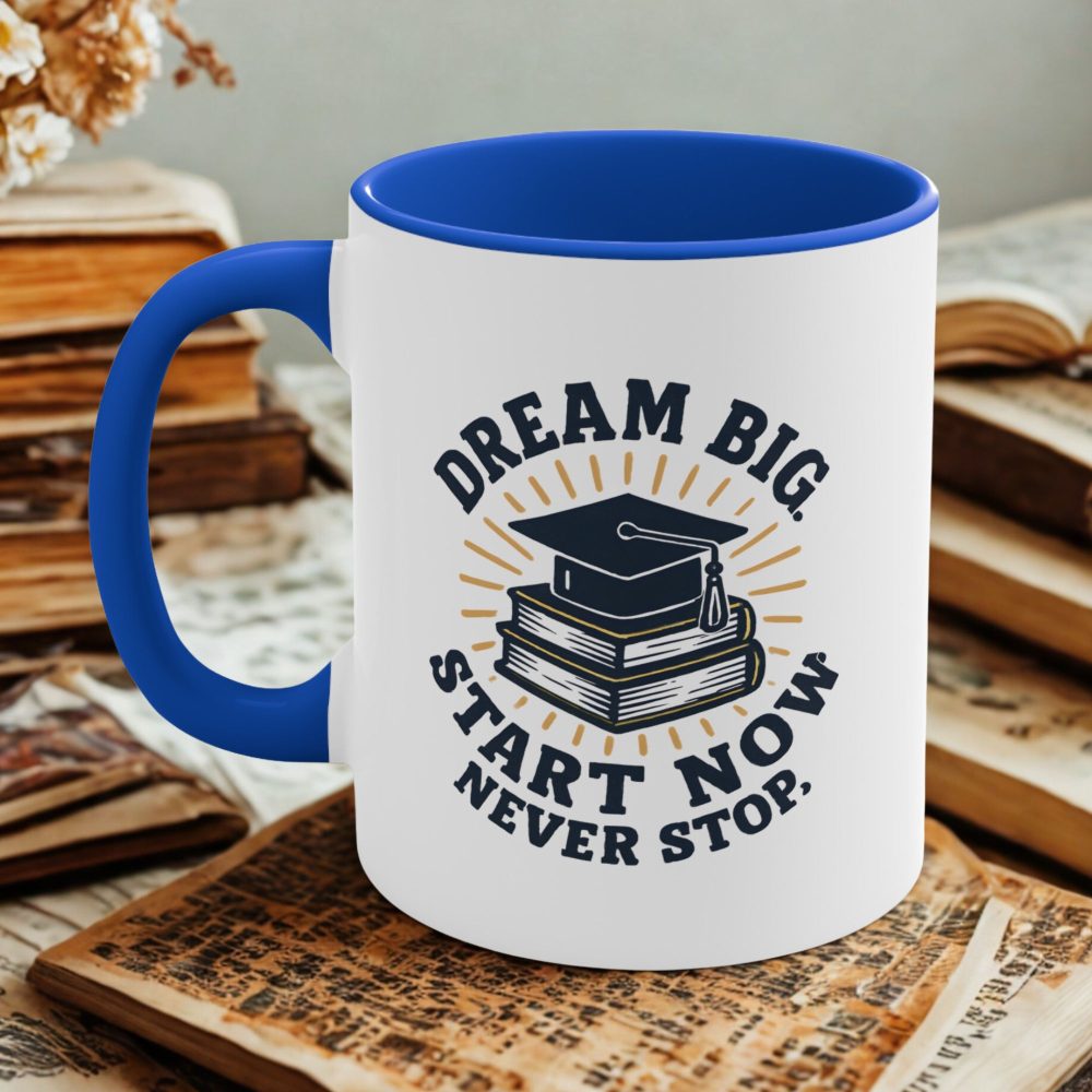 Dream Big Start Now Never Stop Mug – Inspirational Graduation Mug