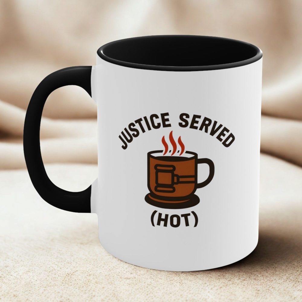 Justice served lawyer mug lovers will appreciate this clever courtroom-inspired design that blends legal humour with everyday coffee rituals. Featuring the bold phrase “Justice Served (Hot)” alongside a coffee mug styled with a gavel handle and rising steam, this design is perfect for lawyers who enjoy a sharp wit along with their caffeine. Whether it’s for long days at the office, early court starts, or winding down after a case win, this justice served lawyer mug adds personality to every sip. It also makes a great gift for solicitors, barristers, judges, law students, or anyone who lives and breathes the law.