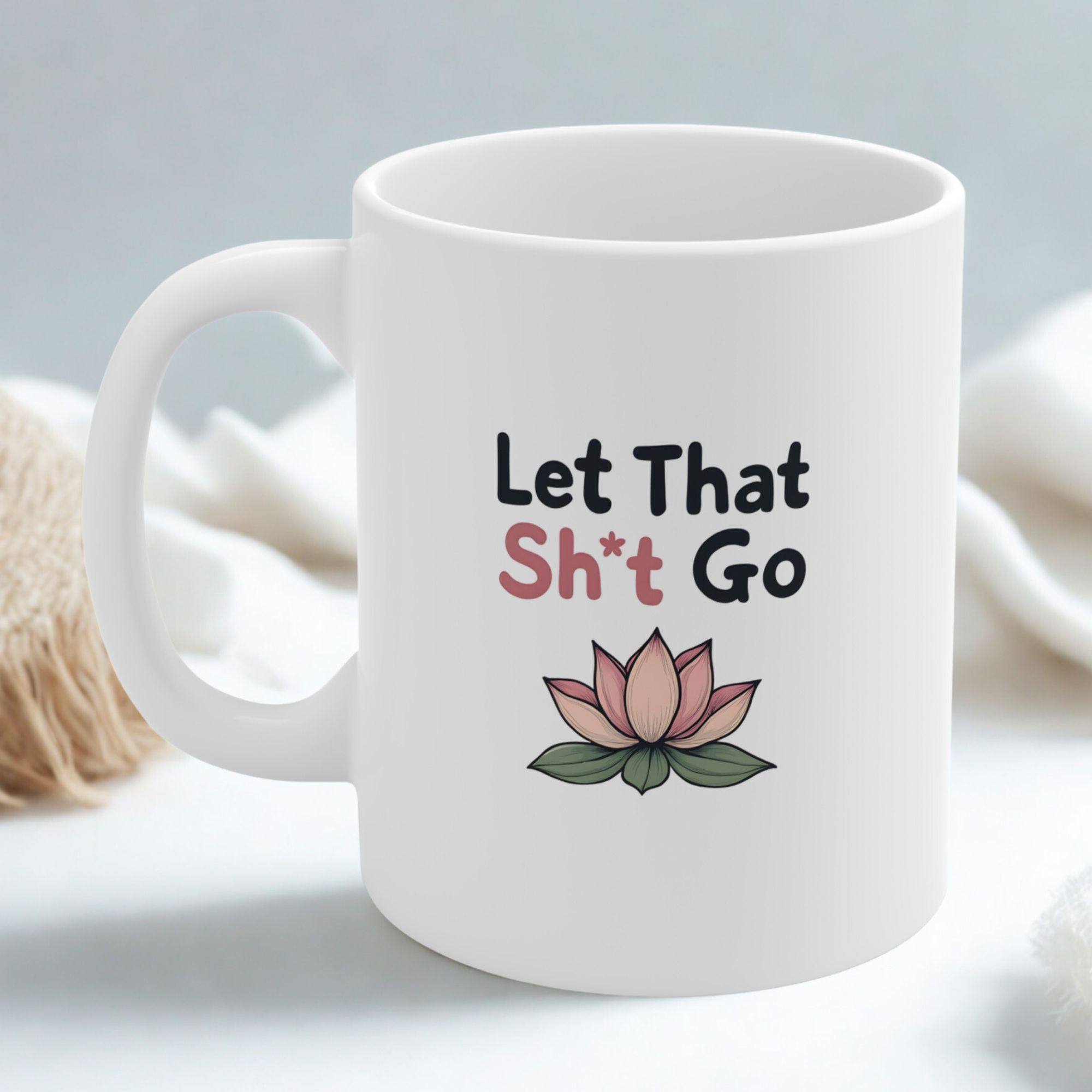 Let That Sh*t Go – Funny Mindfulness Mug with Lotus Design