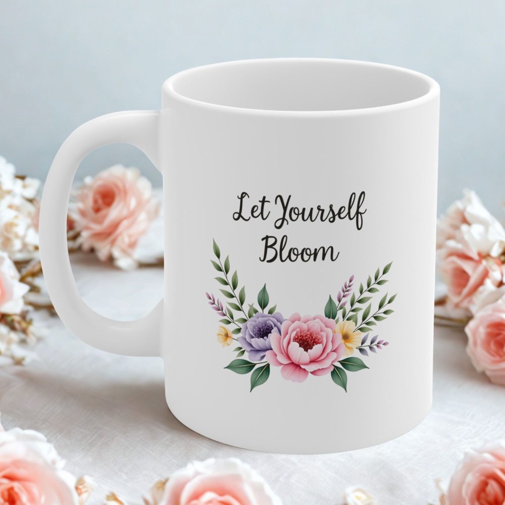 Let your spirit flourish with this “Let Yourself Bloom” mug—featuring soft florals and an empowering message of growth and grace.