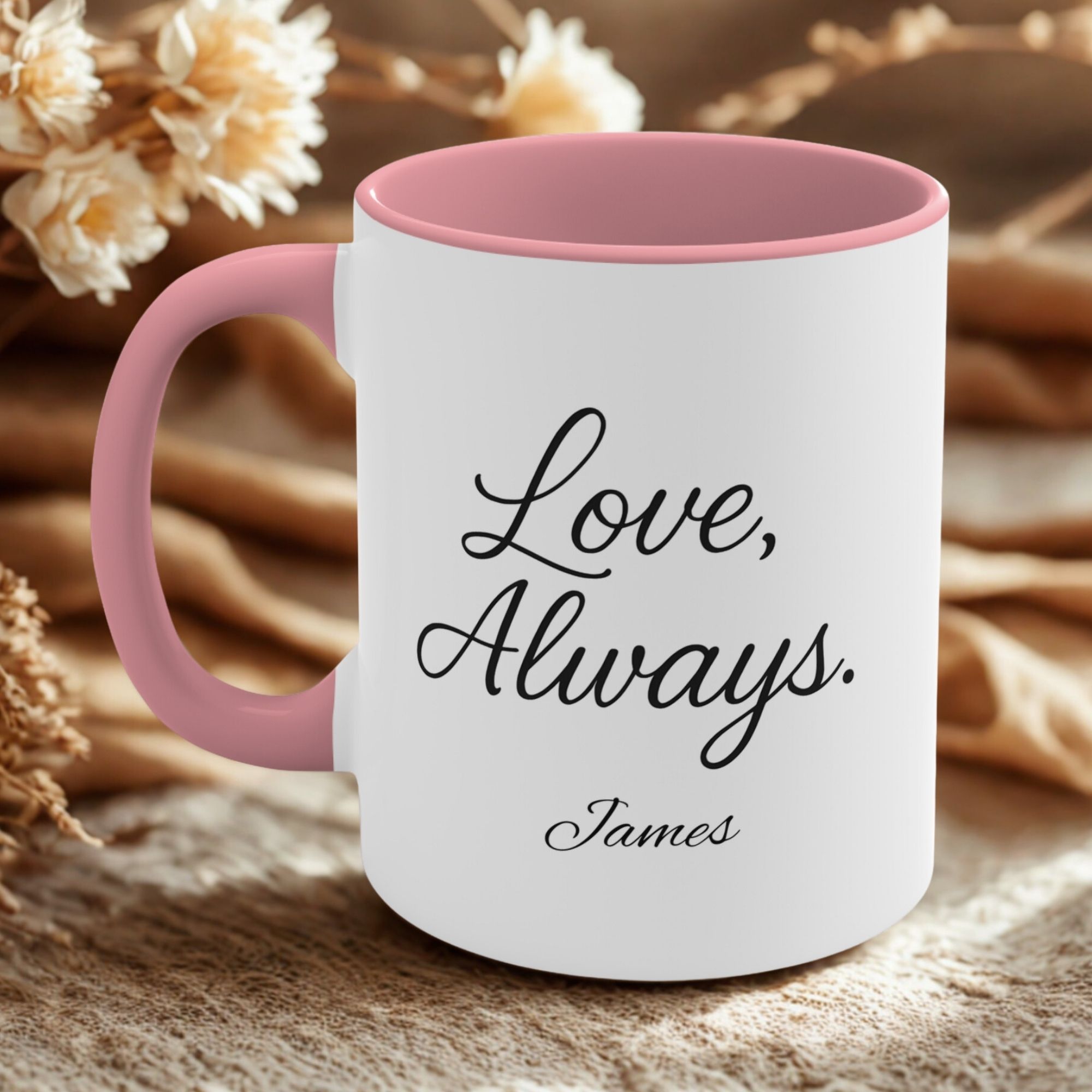 This love always script mug offers a perfect balance of romance and simplicity — ideal for couples who appreciate understated, meaningful design.