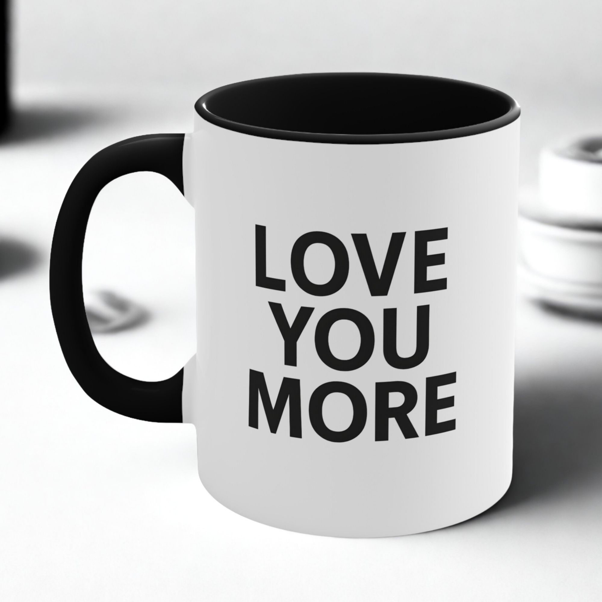 If you’re looking for a modern and timeless love you more text mug, this design delivers affection in the most understated and stylish way.