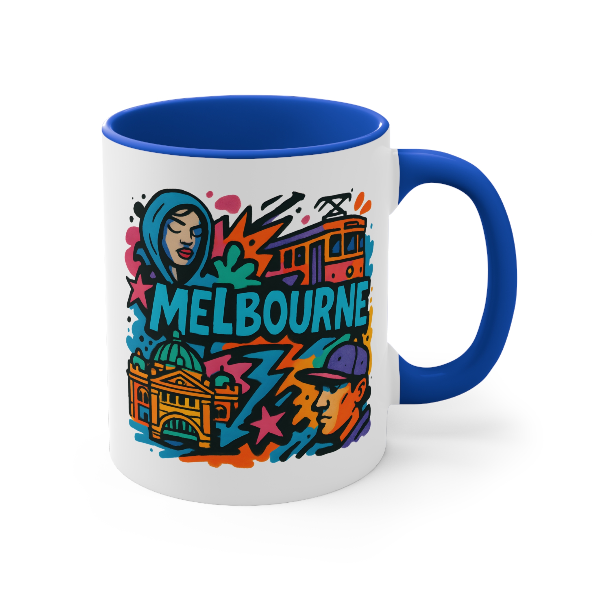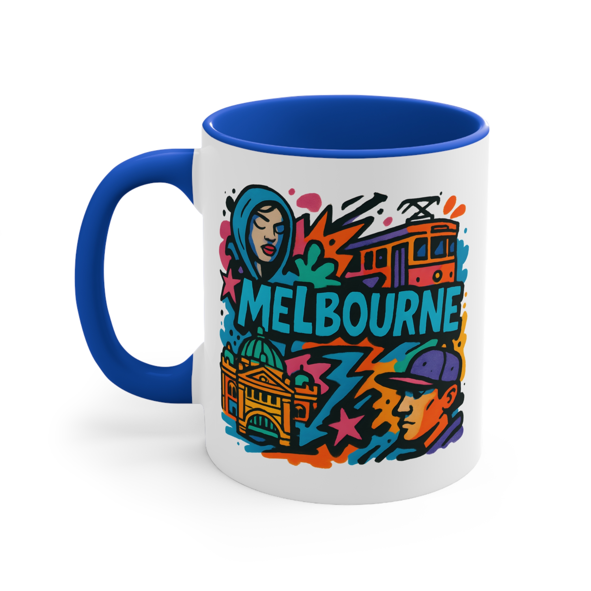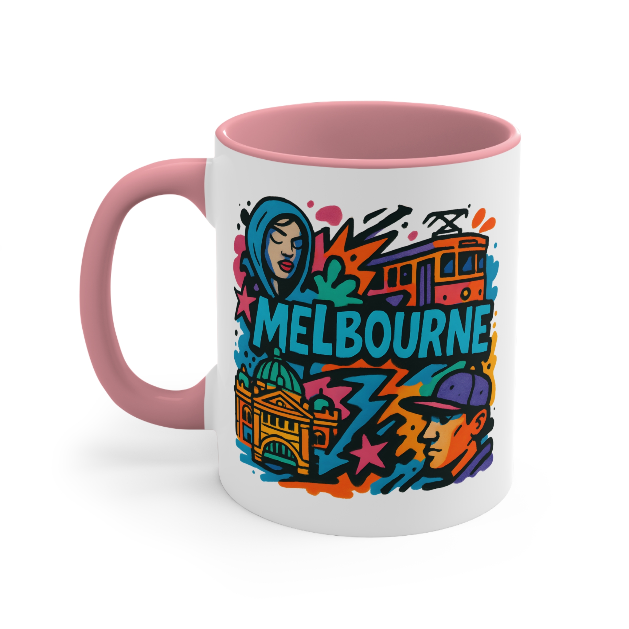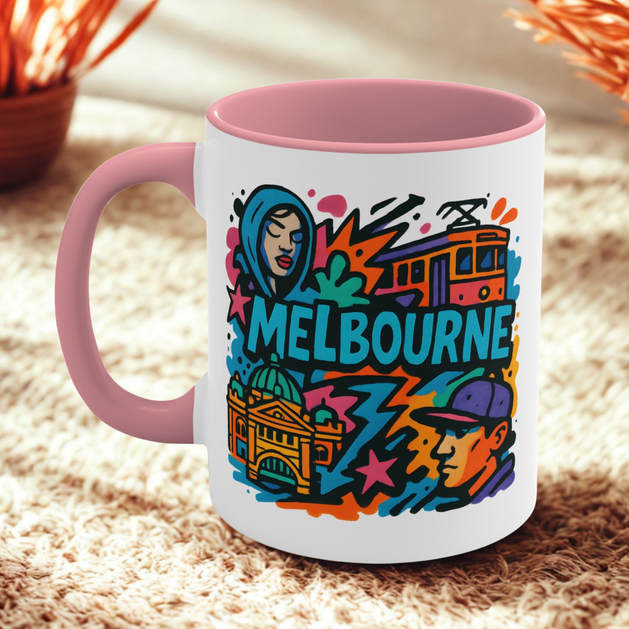 This eye-catching design blends urban street culture with famous city elements — from trams to architecture — all brought together in a vibrant graffiti-style composition. It’s the perfect way to bring a piece of Melbourne’s artistic vibe into your daily routine.