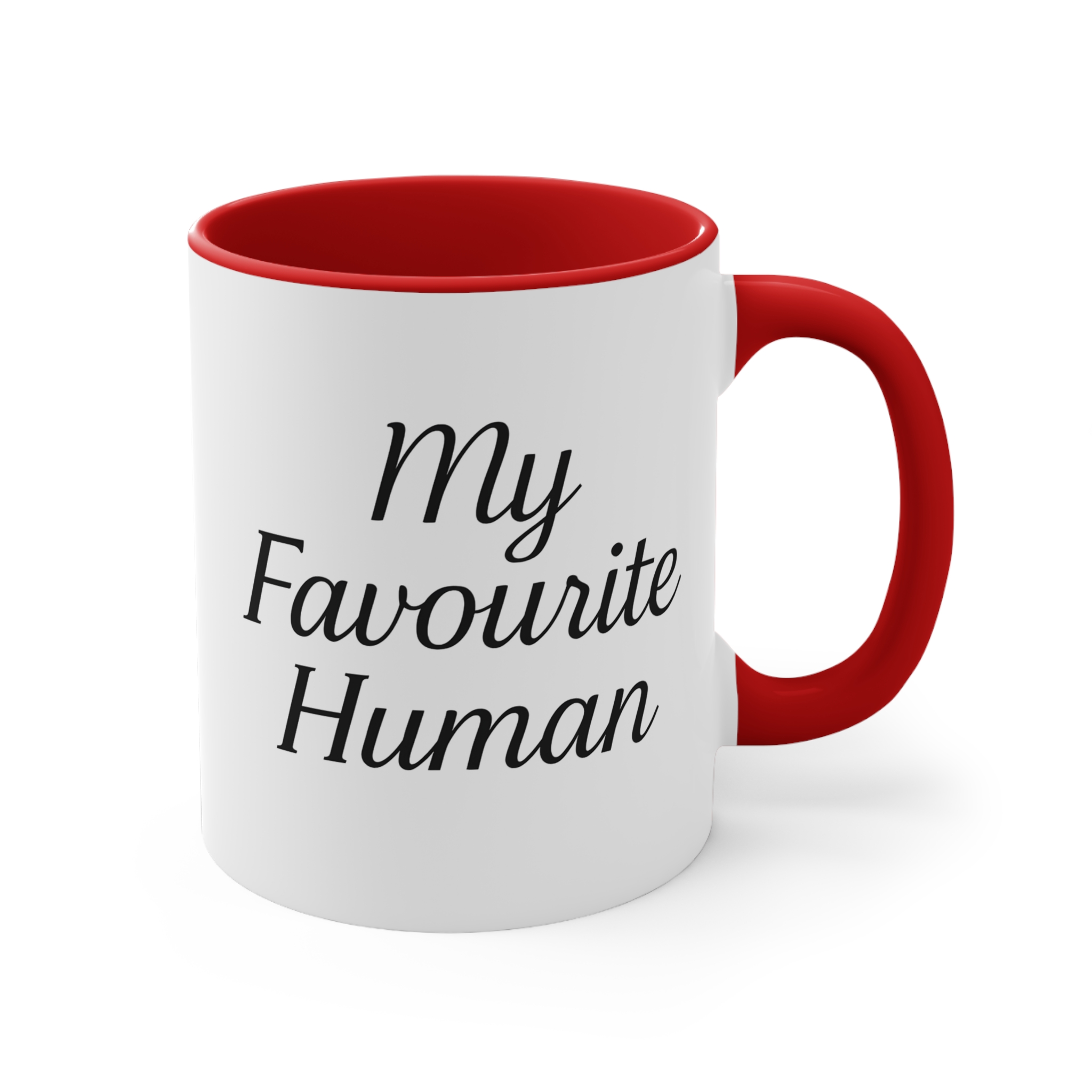 Tell them they’re your favourite with this my favourite human mug. 11oz ceramic mug, available in black, red, blue or pink handle, microwave safe, hand wash recommended.