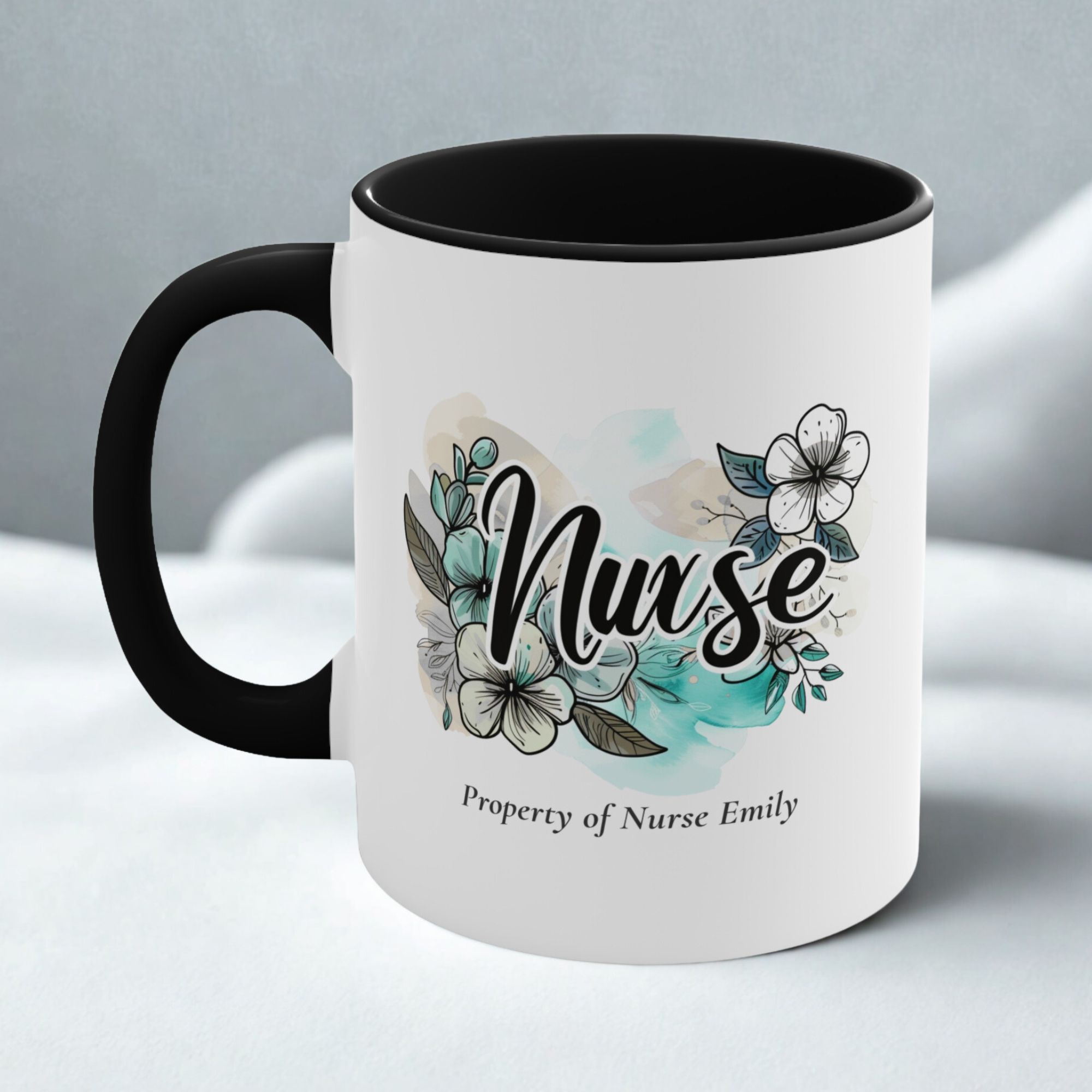 Show appreciation for the heroes in scrubs with this elegant Name Nurse Mug, featuring a soft watercolor floral design and the word Nurse in stylish script. Personalise it with the nurse’s name (e.g., “Property of Nurse Emily”) to create a meaningful and practical keepsake for daily coffee breaks.