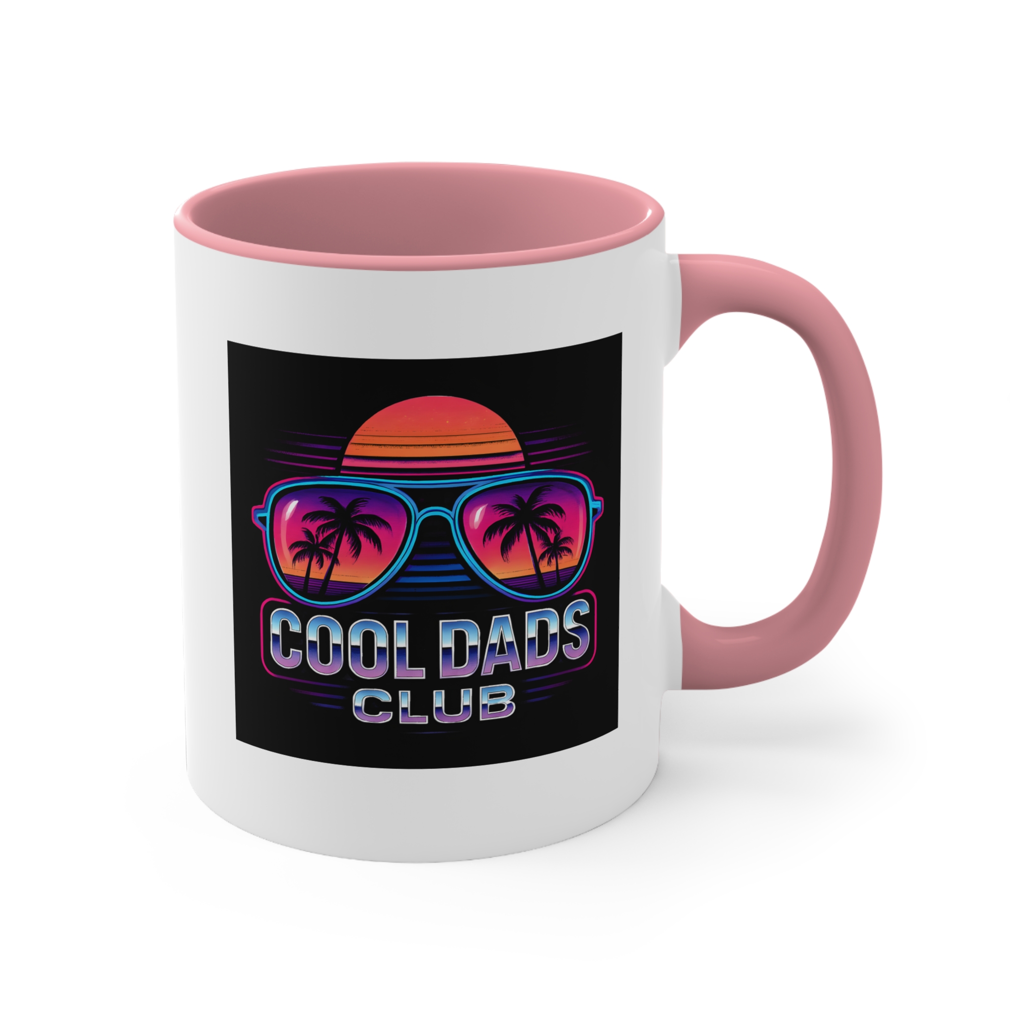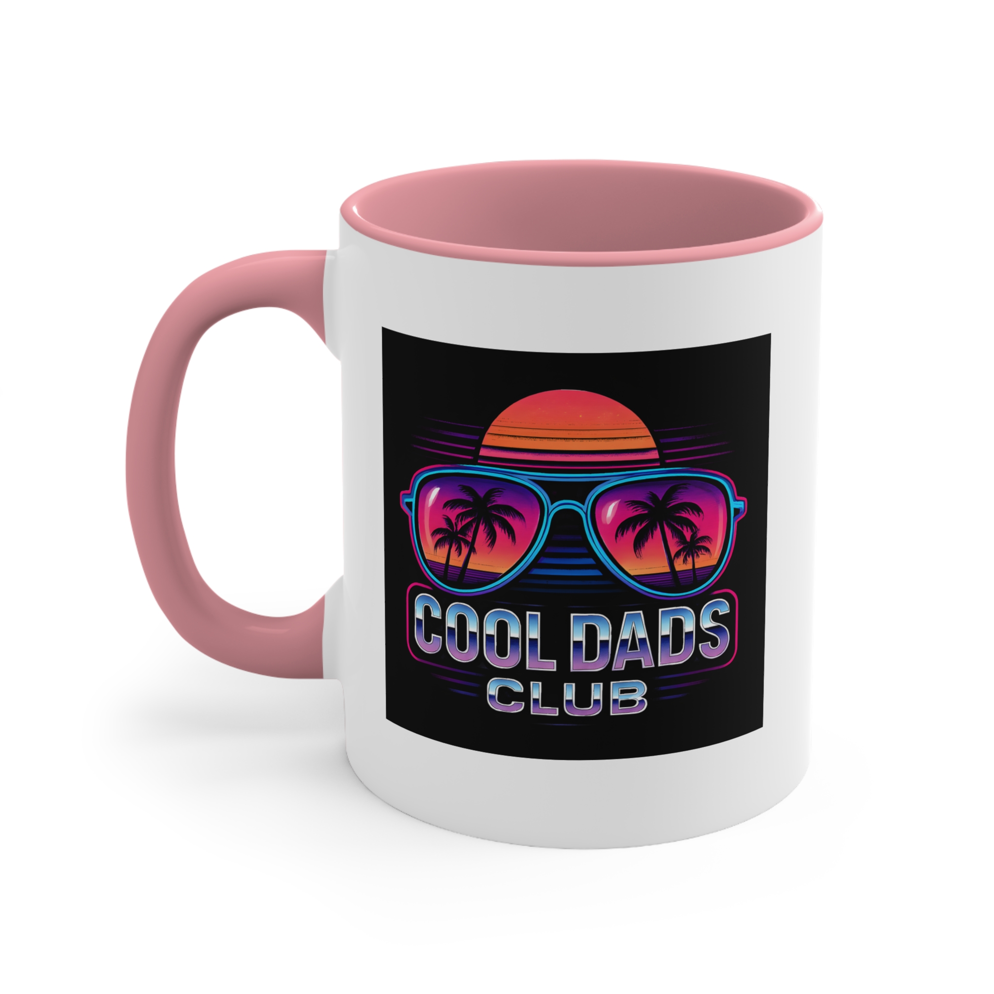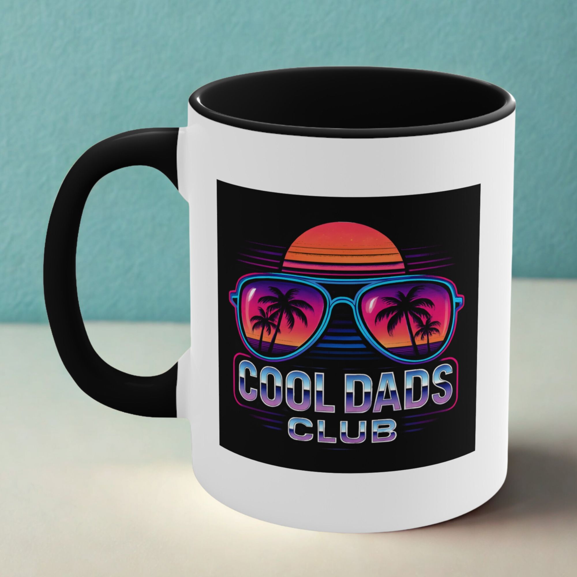 This neon dad mug is perfect for the Cool Dads Club, featuring palm tree sunglasses and a sunset vibe. A bright and fun gift for stylish dads.