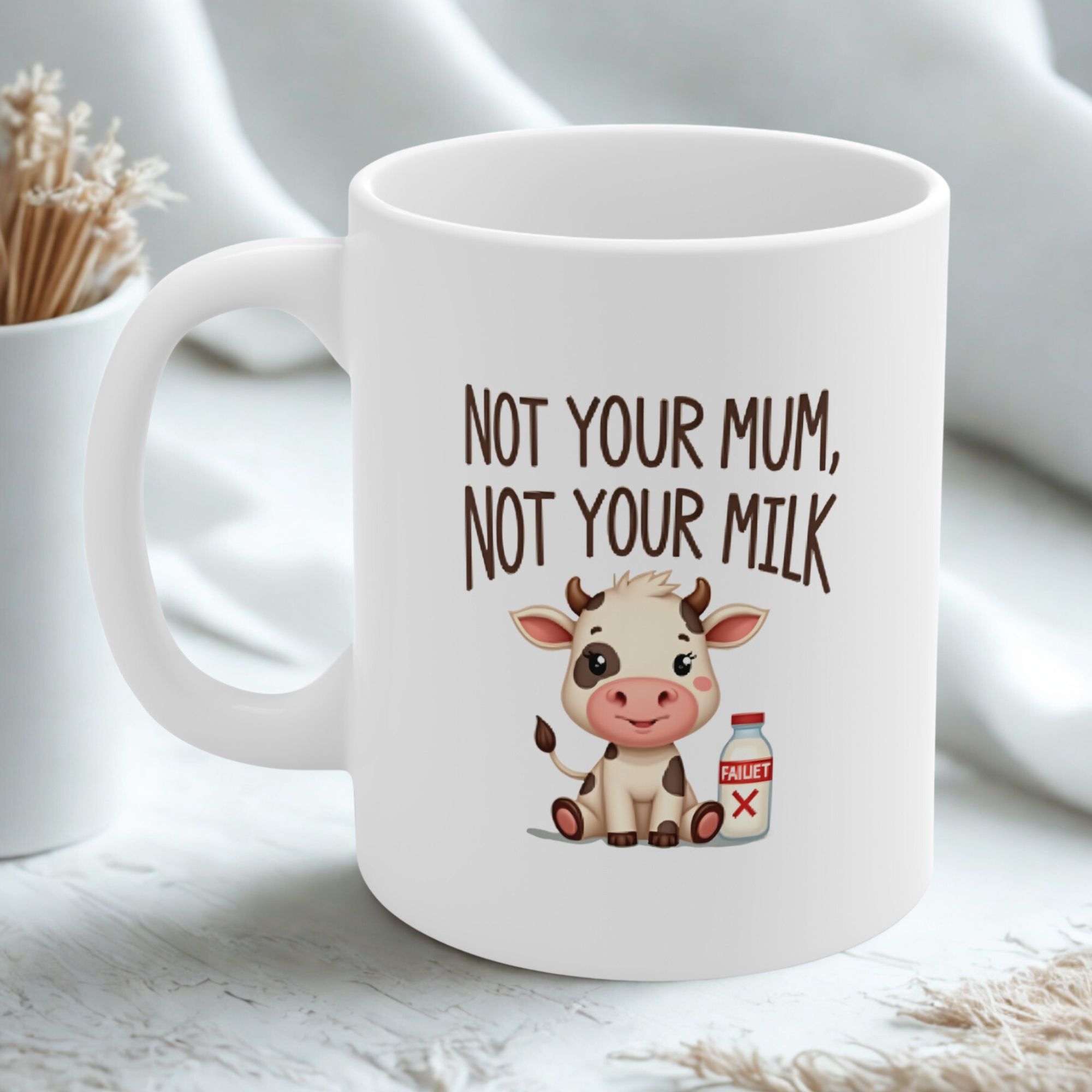 “Not Your Mum, Not Your Milk” curved text design