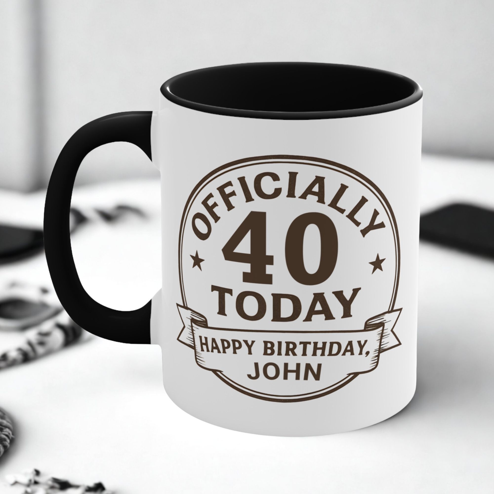 This officially 40 today custom mug is ideal for husbands, wives, parents, friends, or coworkers celebrating their 40th birthday in Australia.