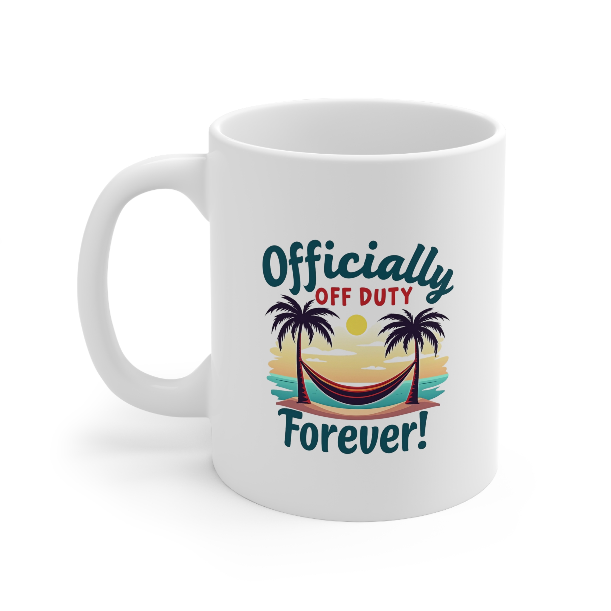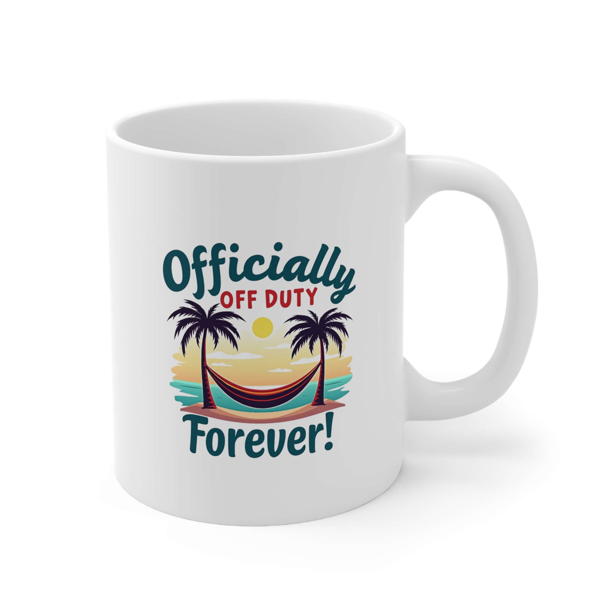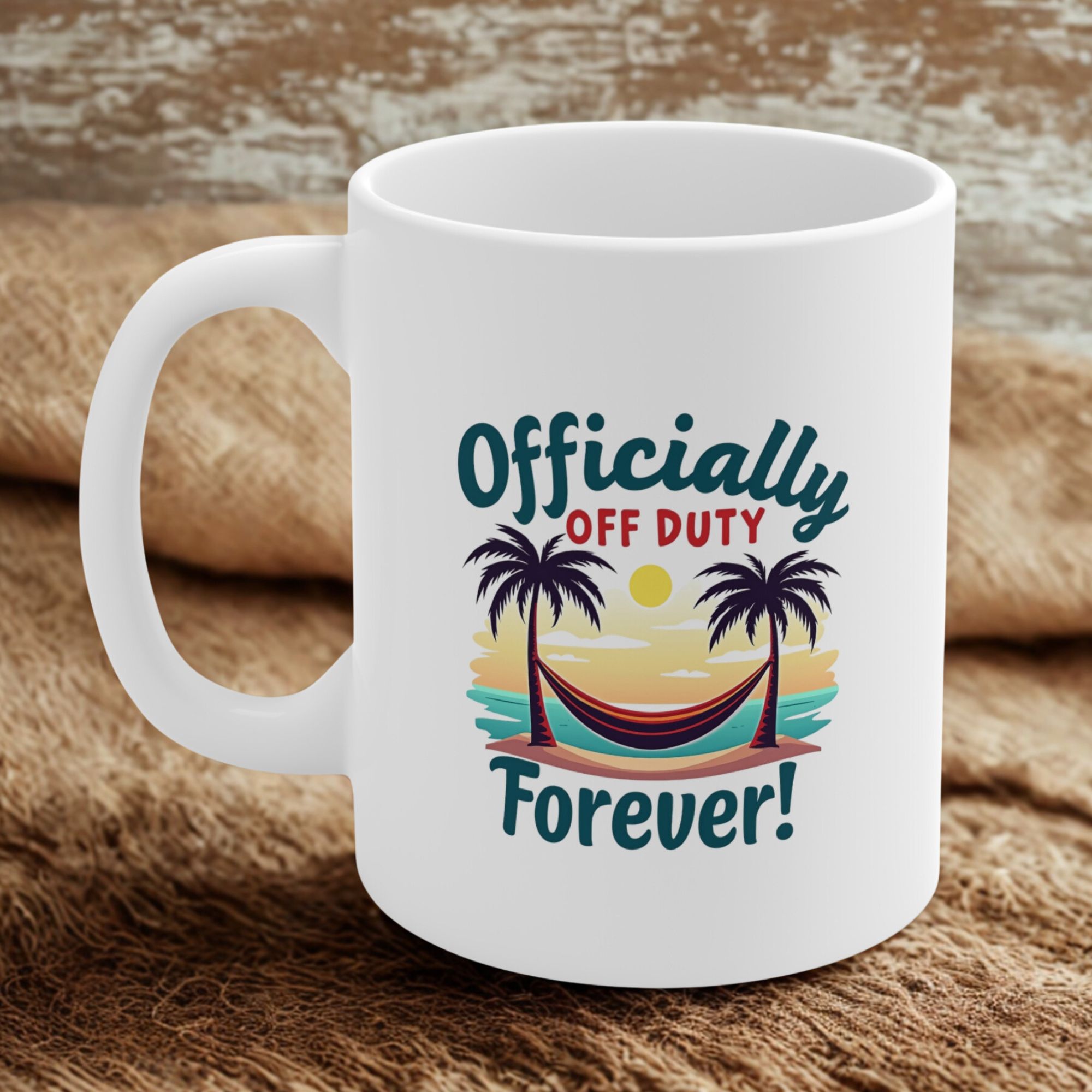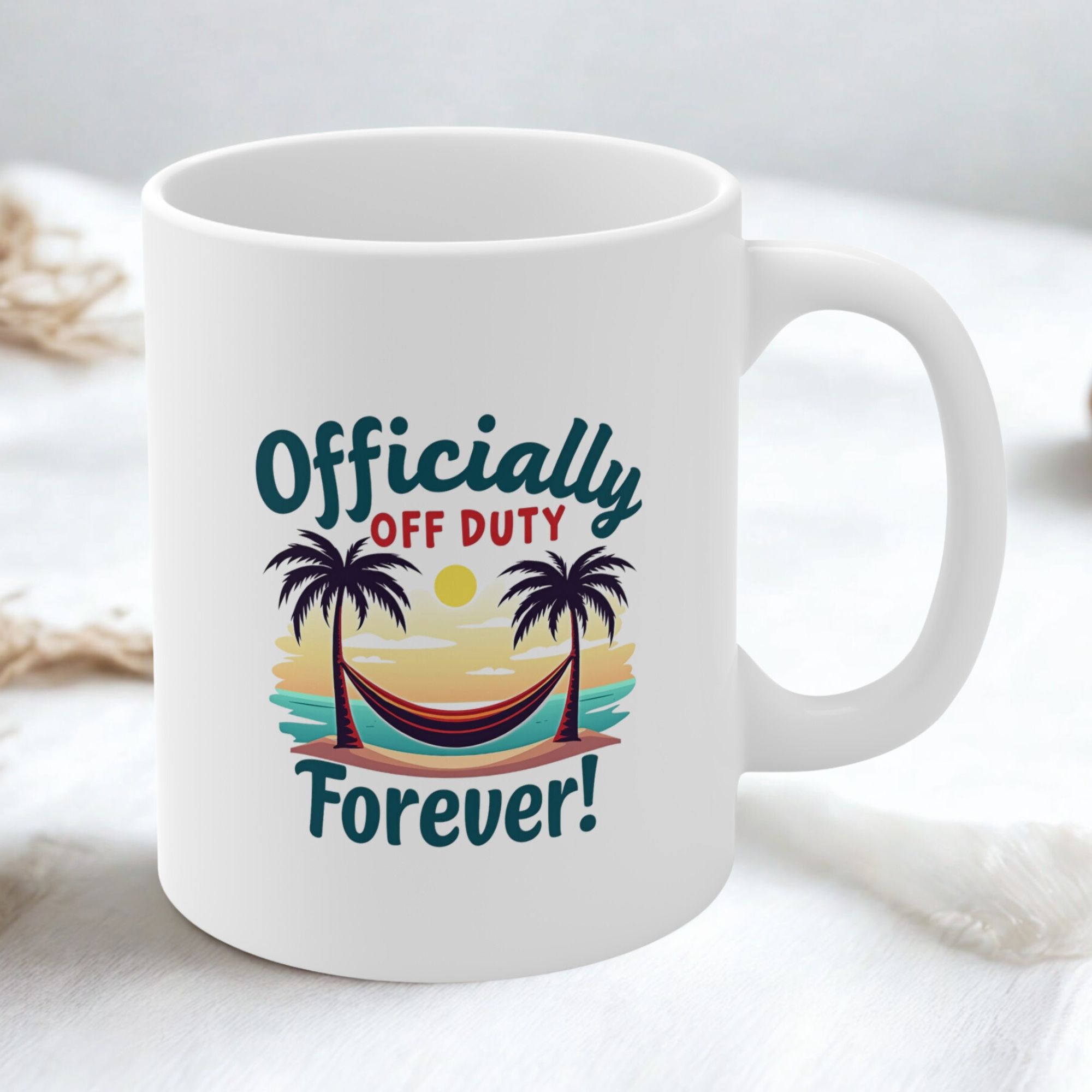 Celebrate retirement in style with the Officially OFF DUTY Forever mug! This 11oz ceramic coffee cup is the perfect gift for those embracing a well-earned break.