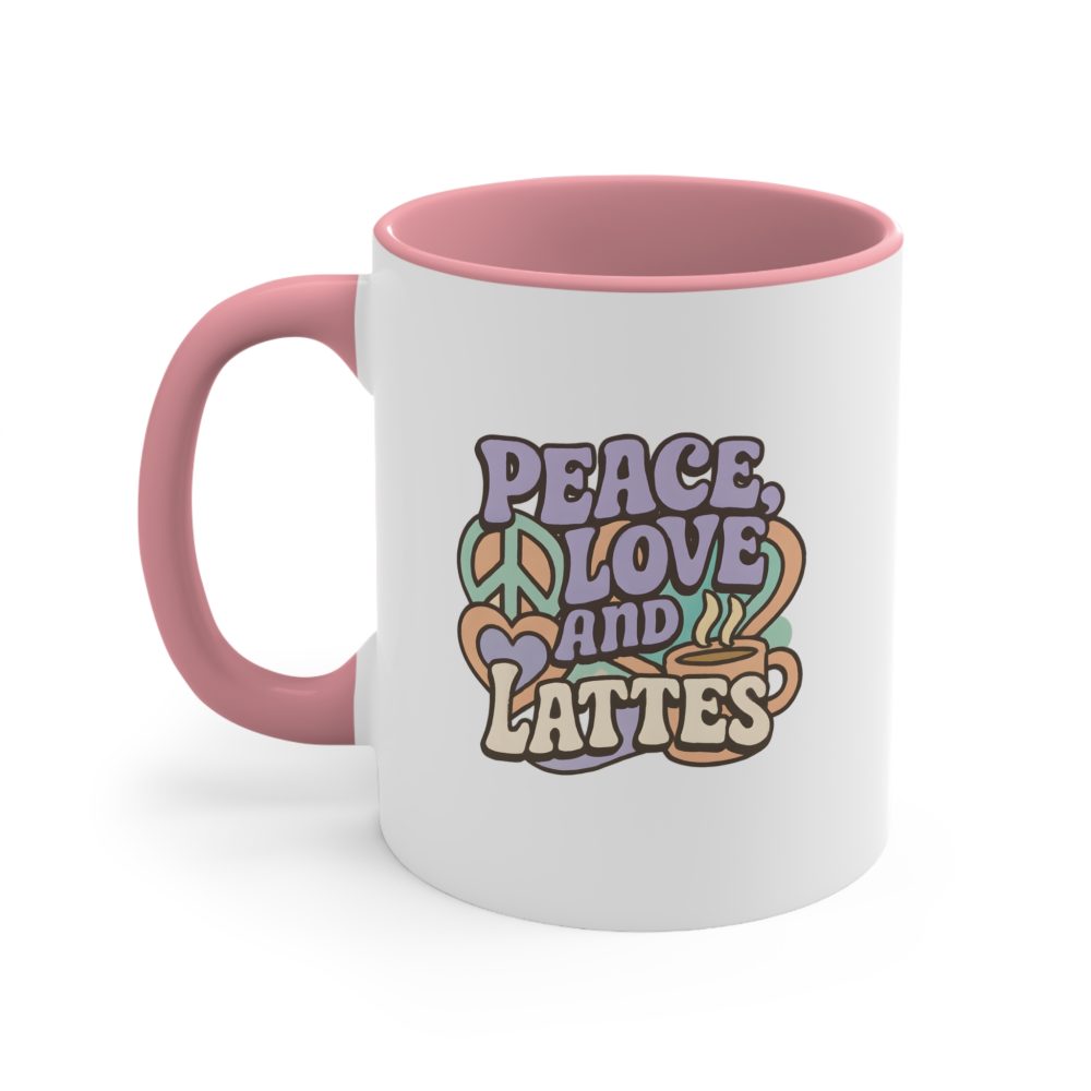 ✔ Retro pastel design with peace sign, heart, and steaming latte