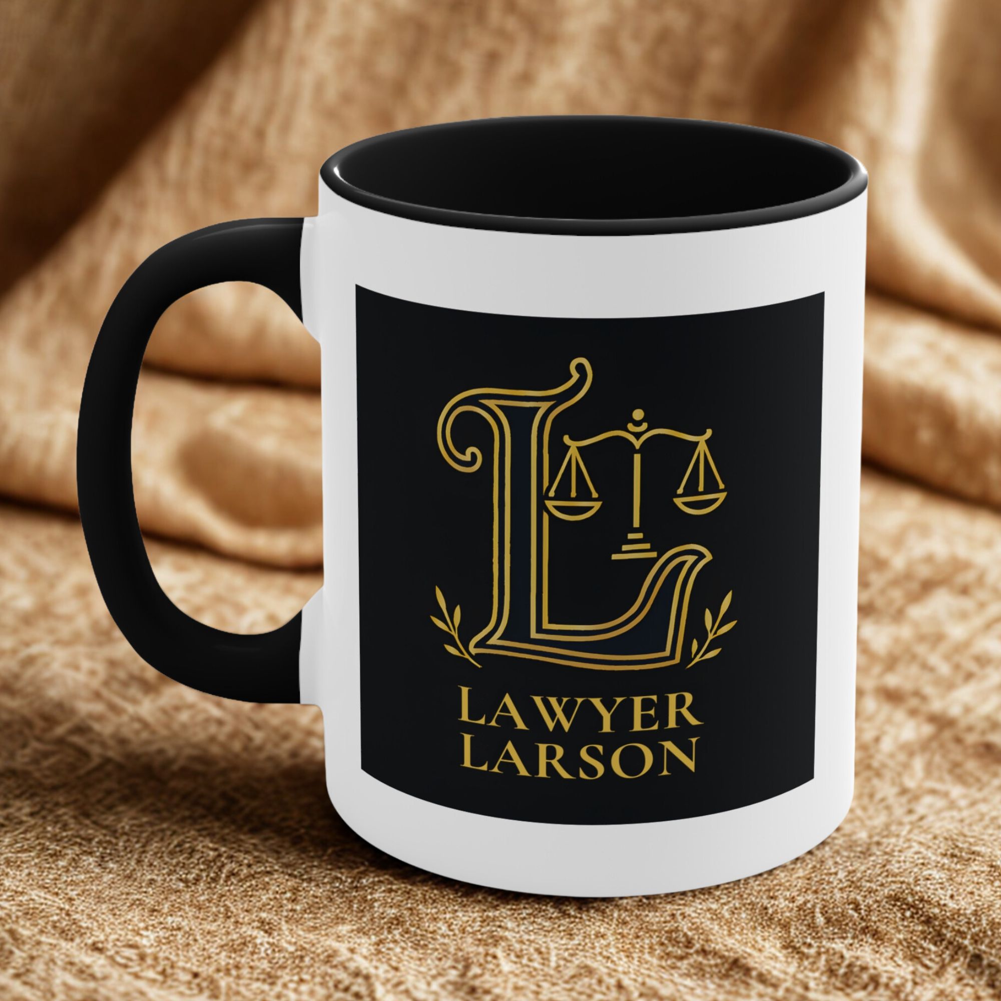 Personalised lawyer mug Australia designs offer a professional and elegant way to showcase your legal identity. Featuring a bold monogram letter with classic justice scales and custom name text, this mug is perfect for lawyers and solicitors who want a personalised touch on their daily coffee or tea.