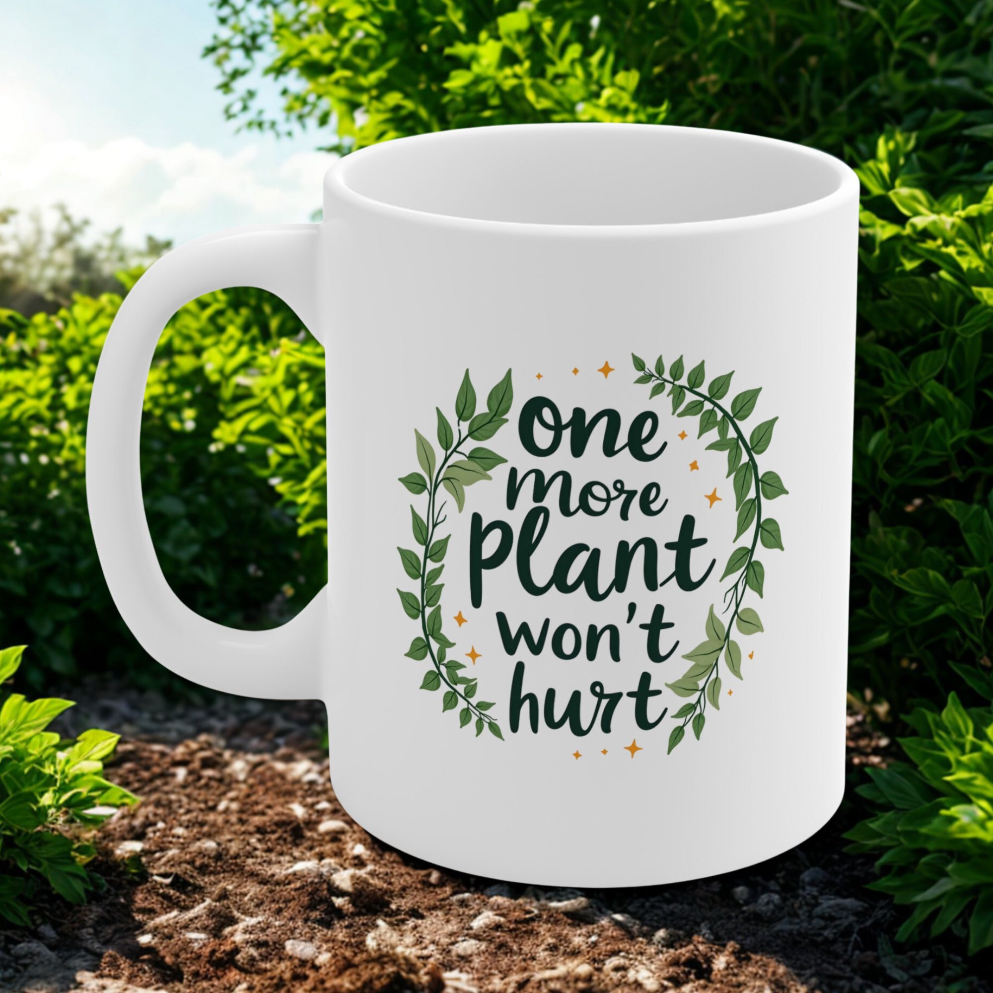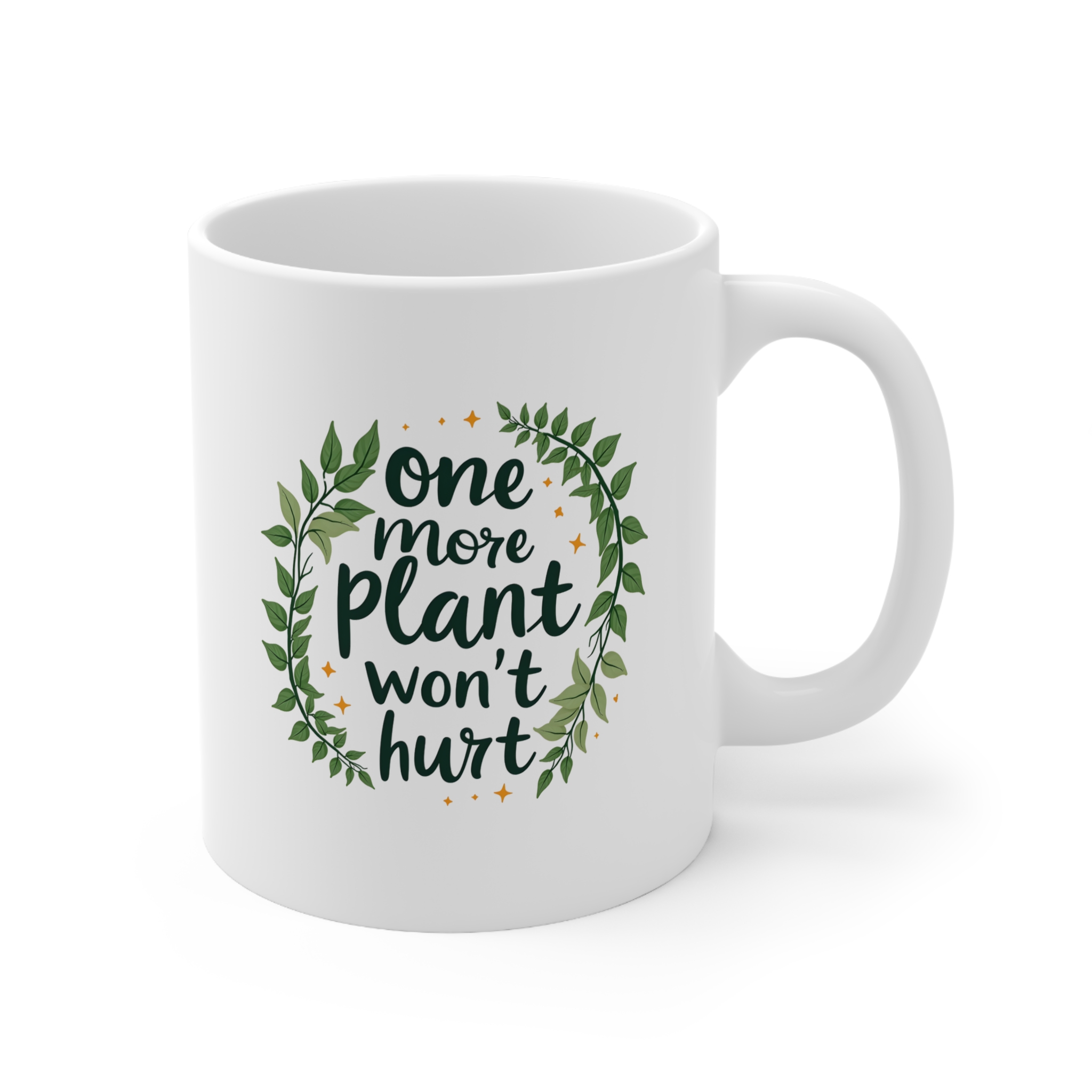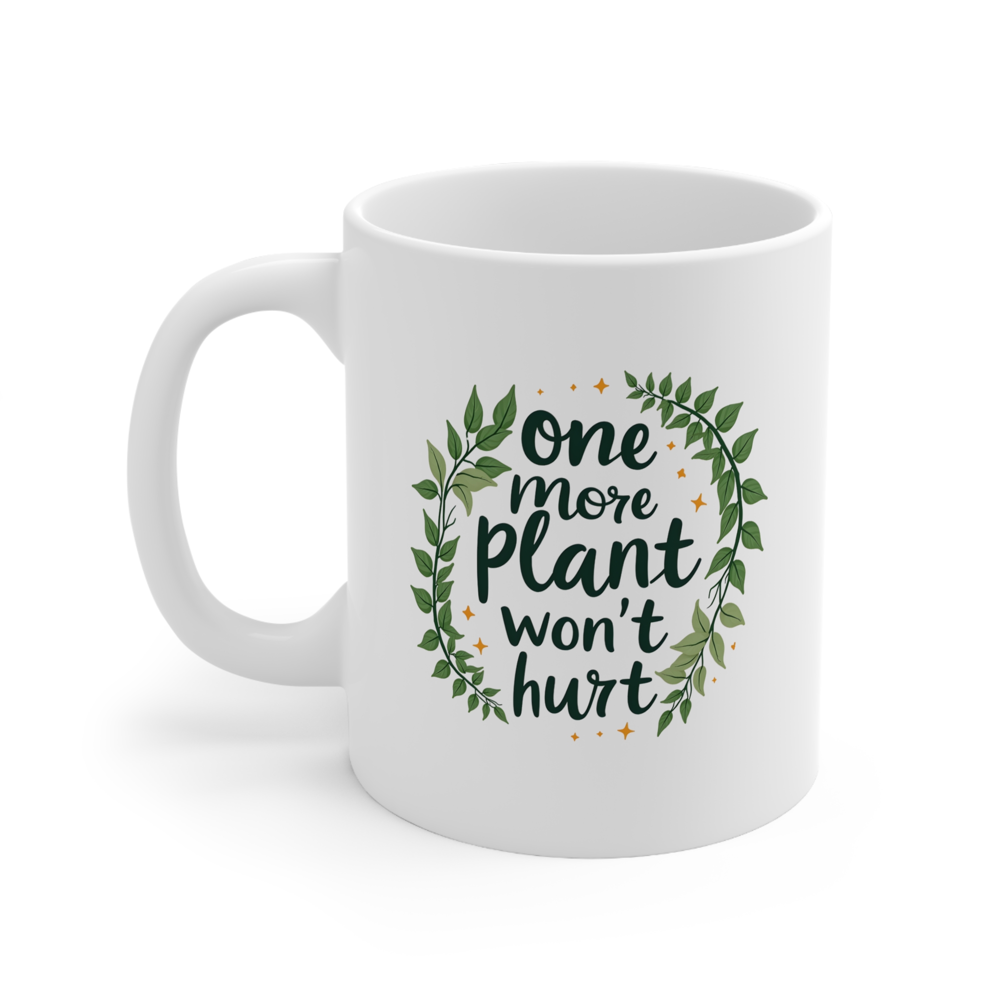 One More Plant Won’t Hurt Mug | Playful Plant Lover Mug with Handwritten Script & Trailing Greenery