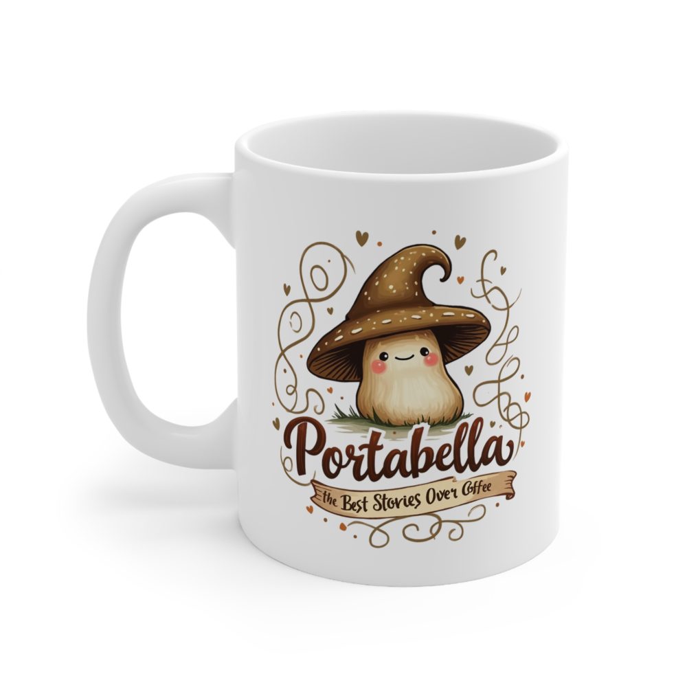 Enjoy warm sips and great stories with this “Portabella – The Best Stories Over Coffee” 11oz ceramic mug. With a cute mushroom illustration and cozy vibe, it’s microwave- and dishwasher-safe — perfect for nature lovers and chatty coffee moments.