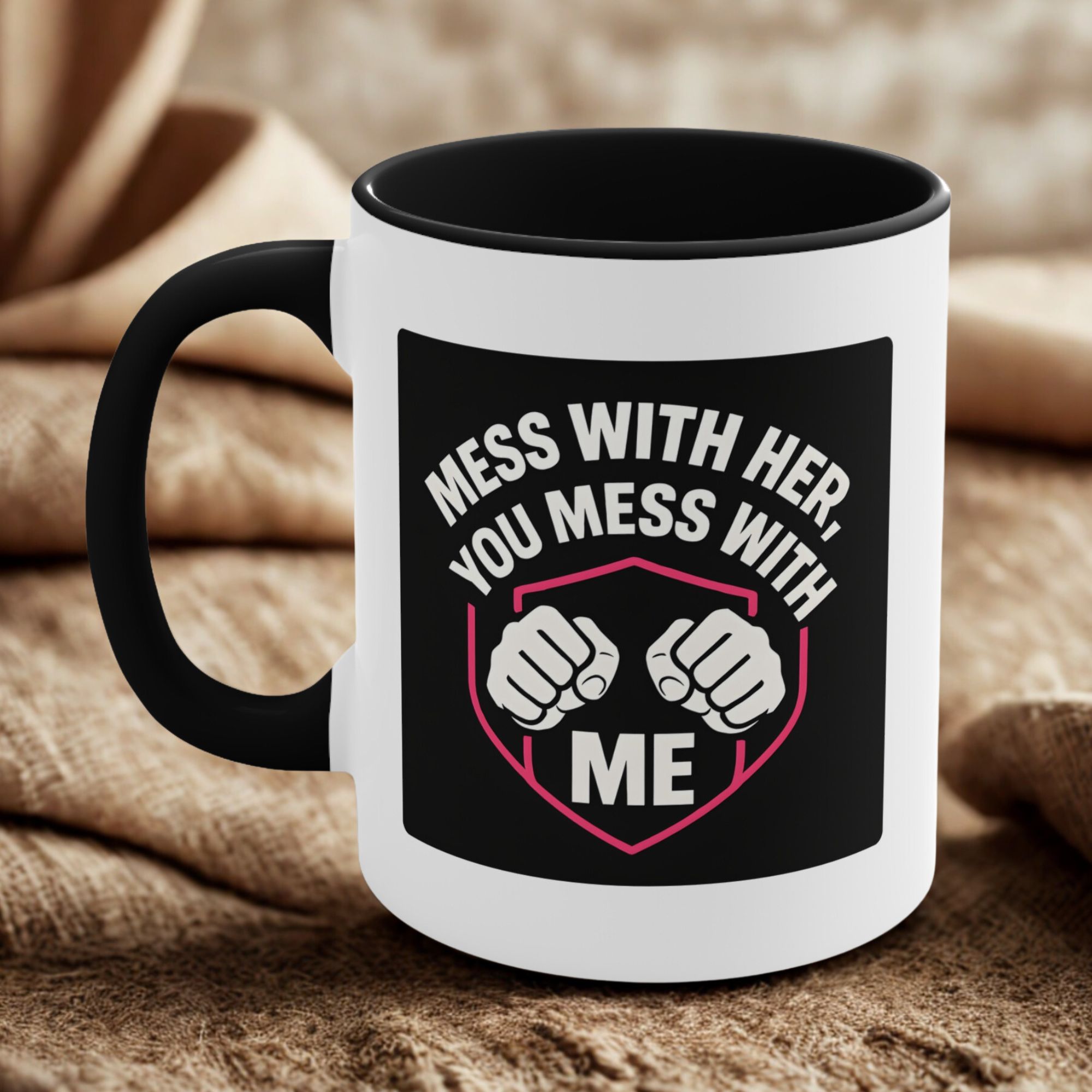 For the ones who would throw hands (or at least a strong side-eye) for their bestie—this protective best friend mug says it loud and proud: “Mess With Her, You Mess With Me.”
