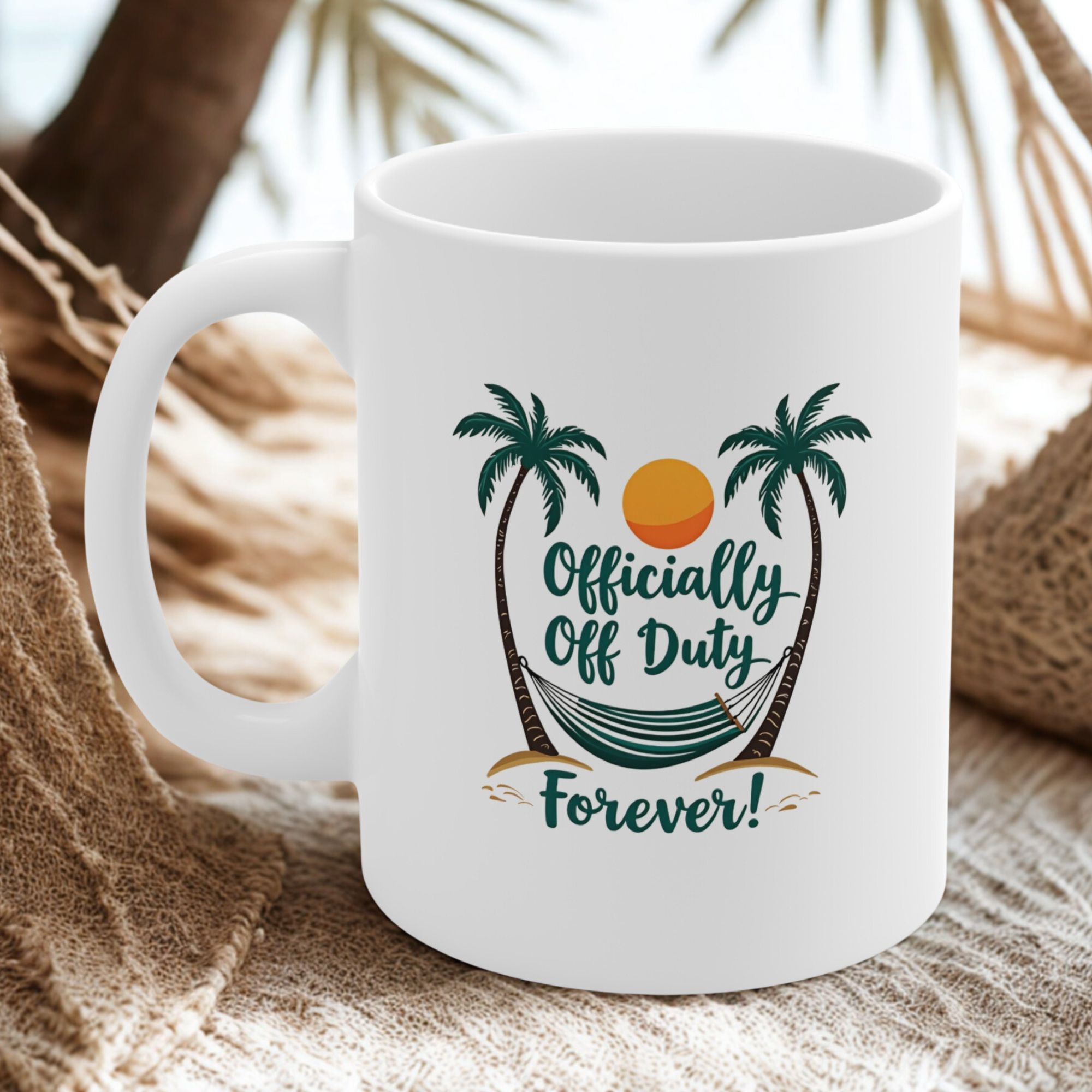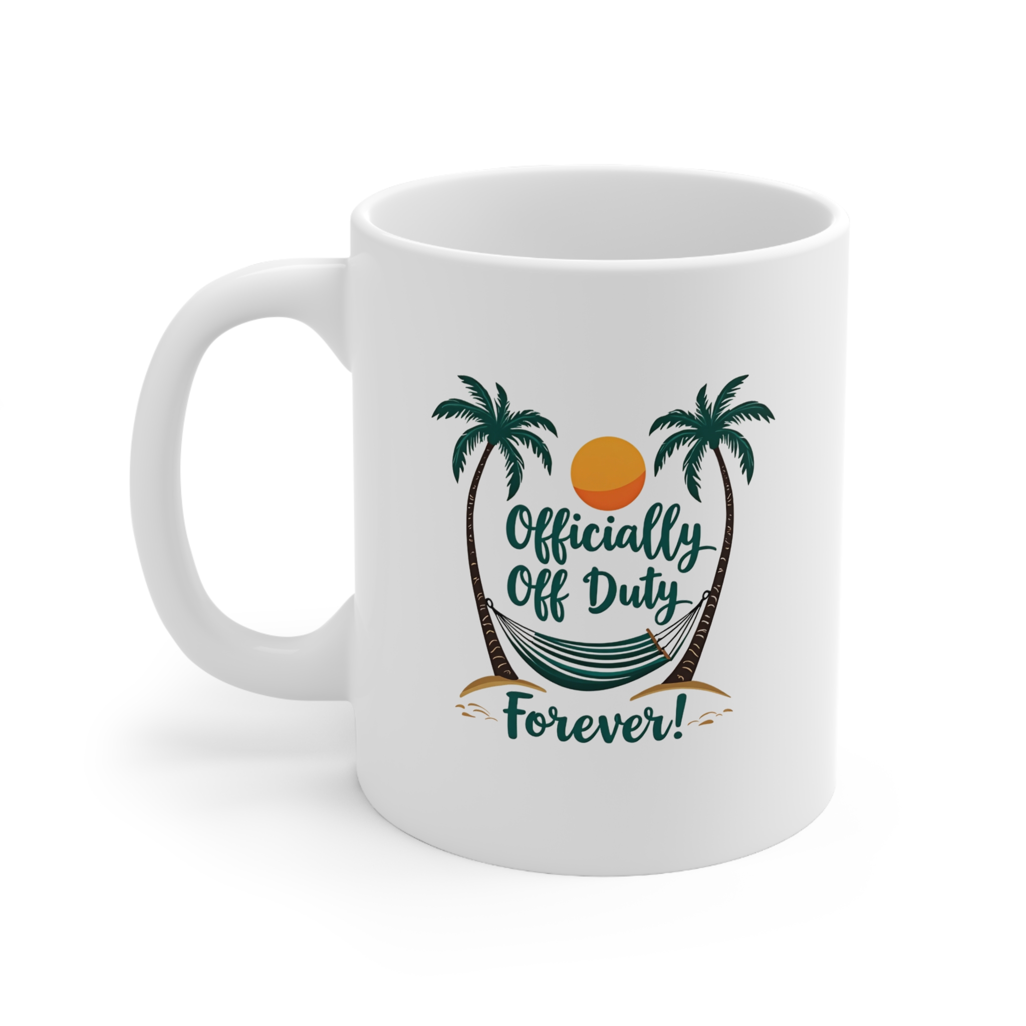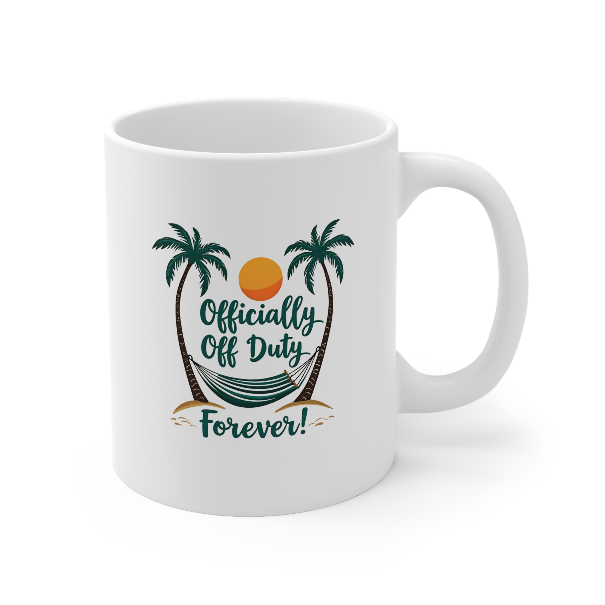 Celebrate the freedom of retirement with the Officially Off Duty Forever mug! Perfect for retirees who are ready to enjoy life without work commitments, this mug is a fun and practical way to mark the occasion. Crafted from durable white ceramic with a glossy finish, this 11oz mug features a C-shaped easy-grip handle for comfortable sipping. It’s lead and BPA-free, ensuring a safe and enjoyable coffee or tea experience. Whether as a thoughtful retirement gift or a daily reminder to relax, this mug is the perfect addition to any collection.