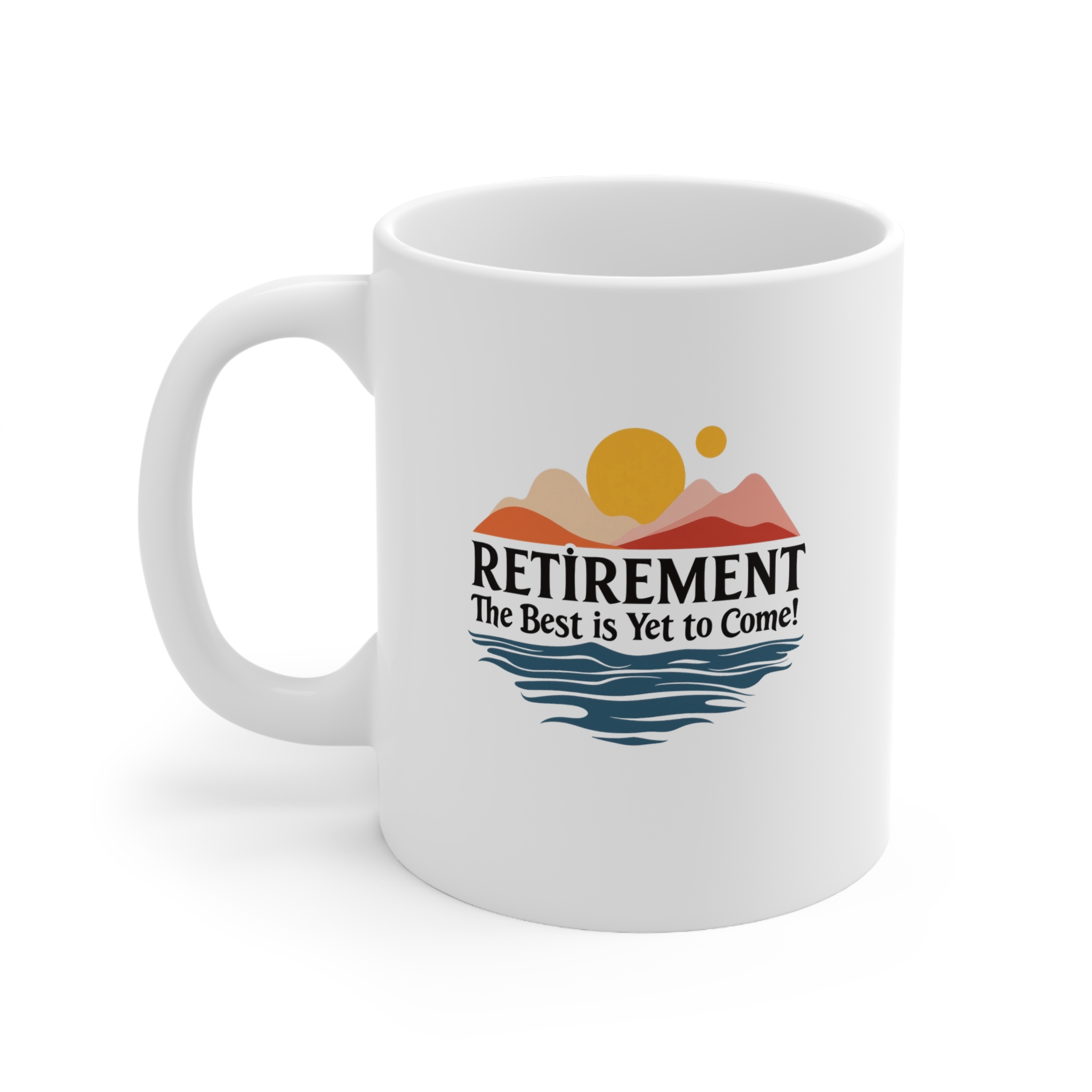 Look forward to the future with the Retirement: The Best Is Yet to Come mug! This 11oz ceramic coffee cup is the perfect inspirational gift for retirees.