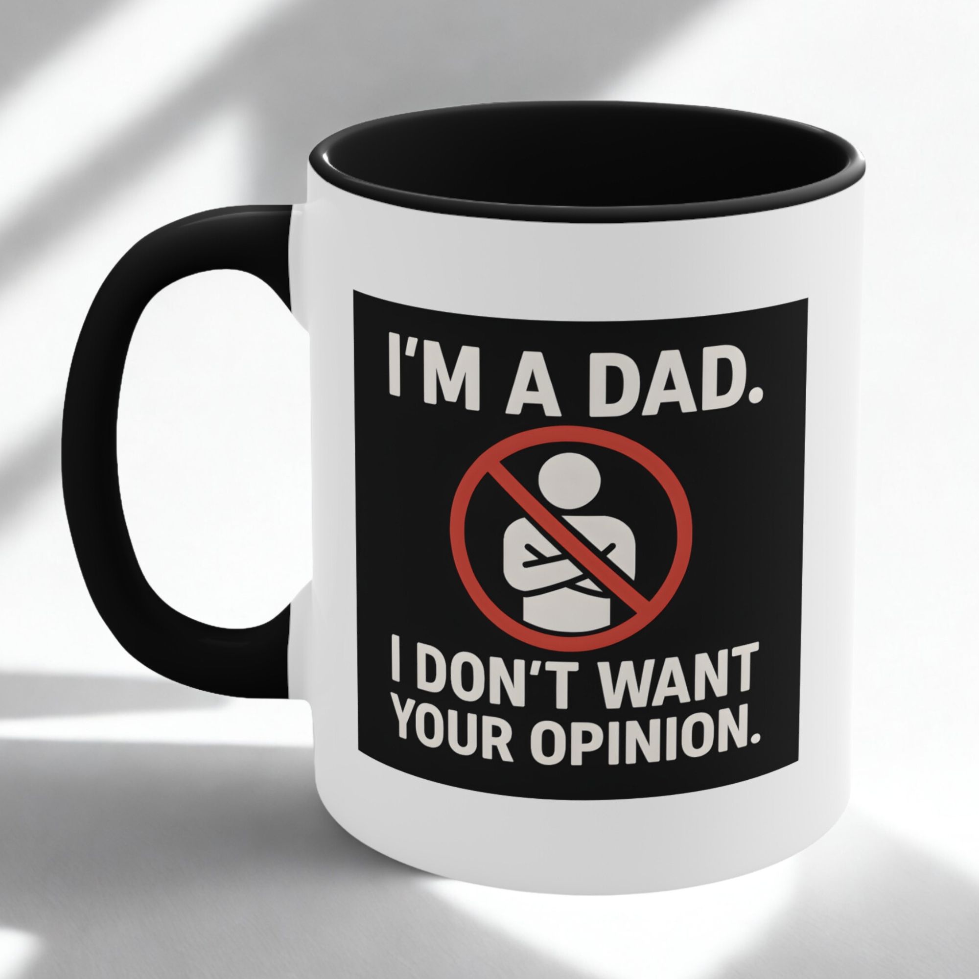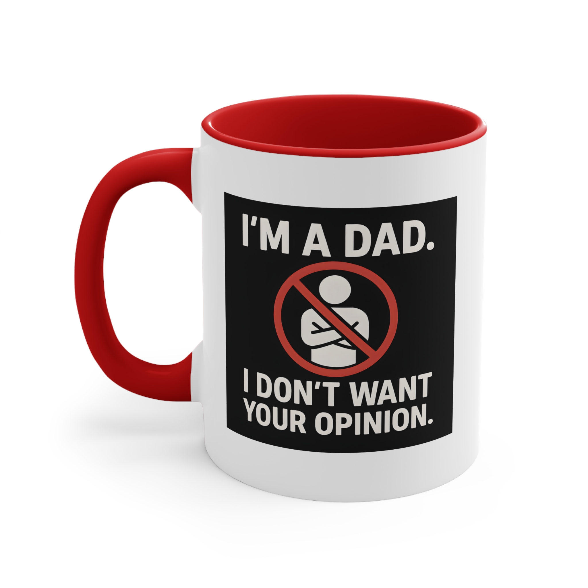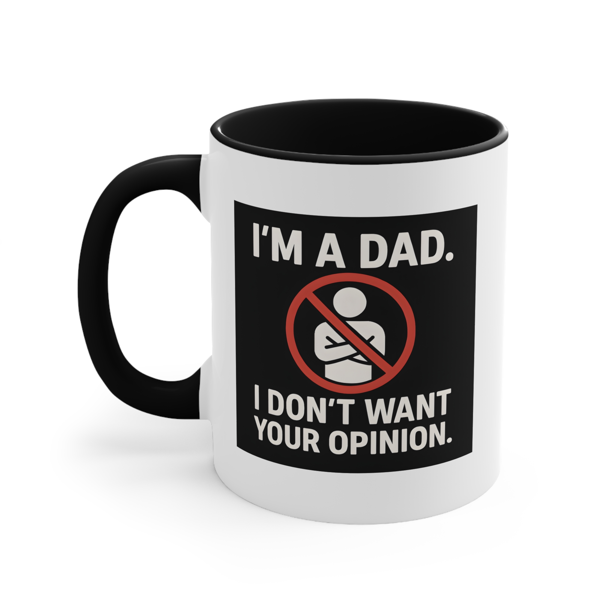 Say it loud, say it proud—this rude dad mug isn’t here for your feedback. Featuring bold white text and a graphic crossed-arms icon on a black-and-red background, it’s made for the dad who’s confident, unapologetic, and not interested in unsolicited advice. Great for mornings when silence is golden.