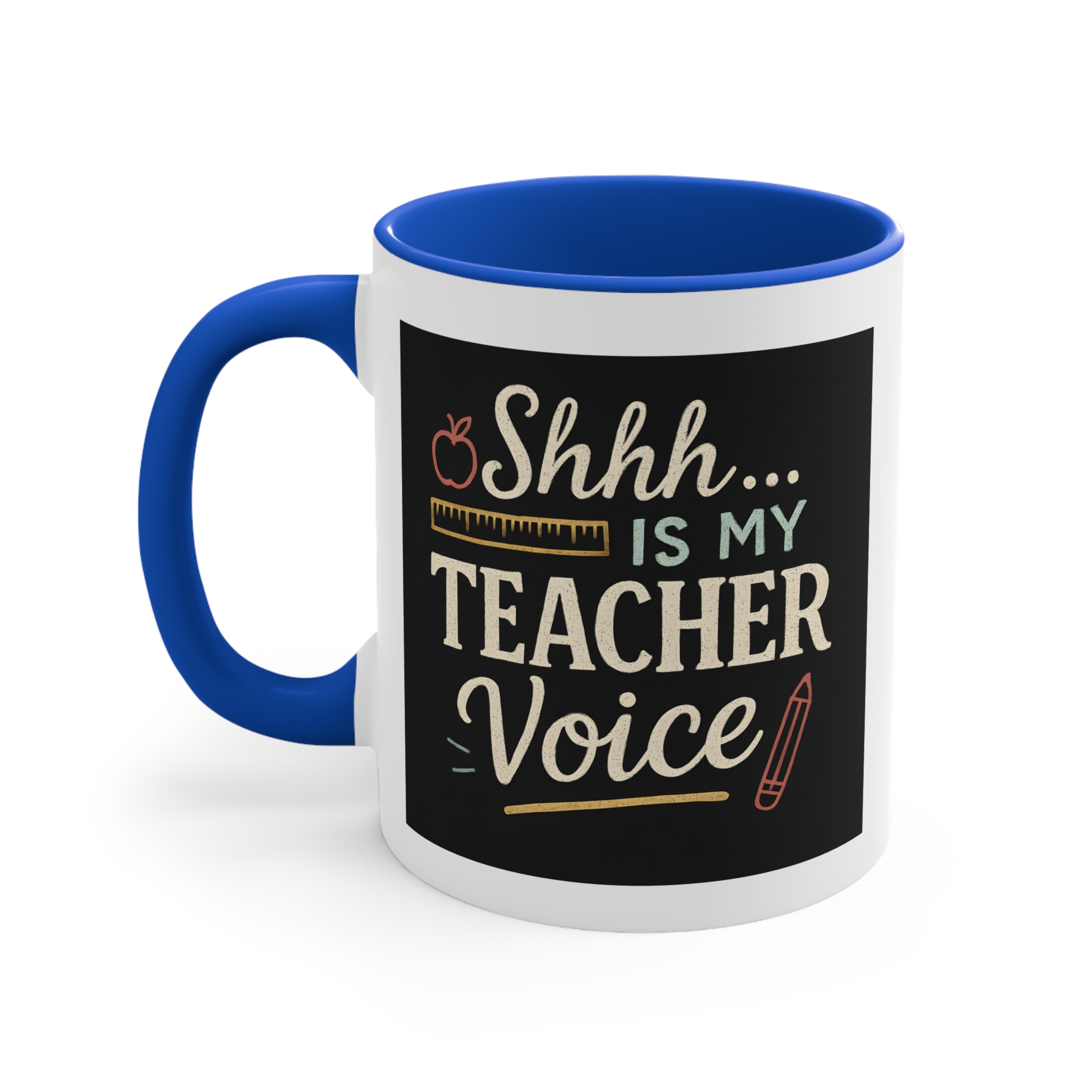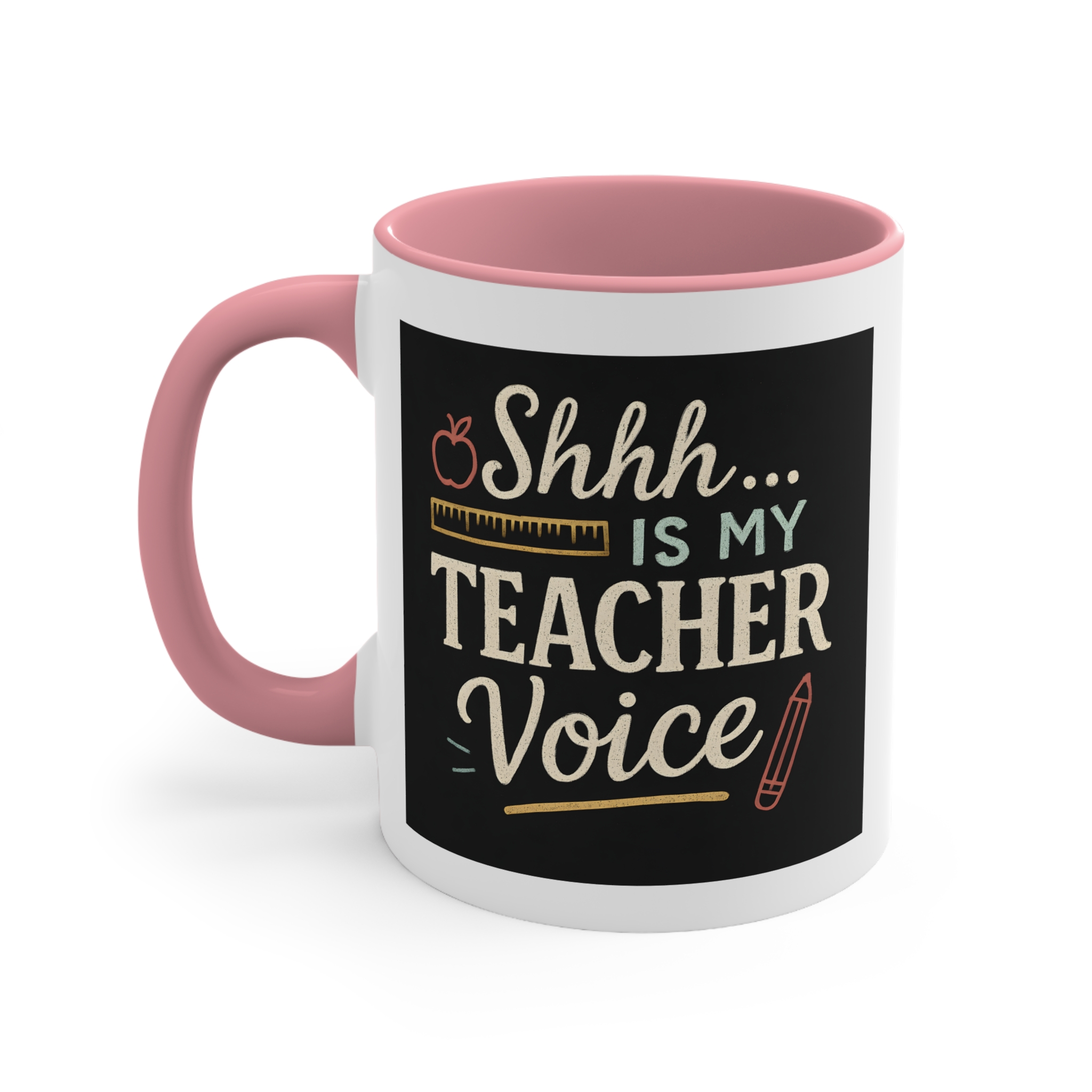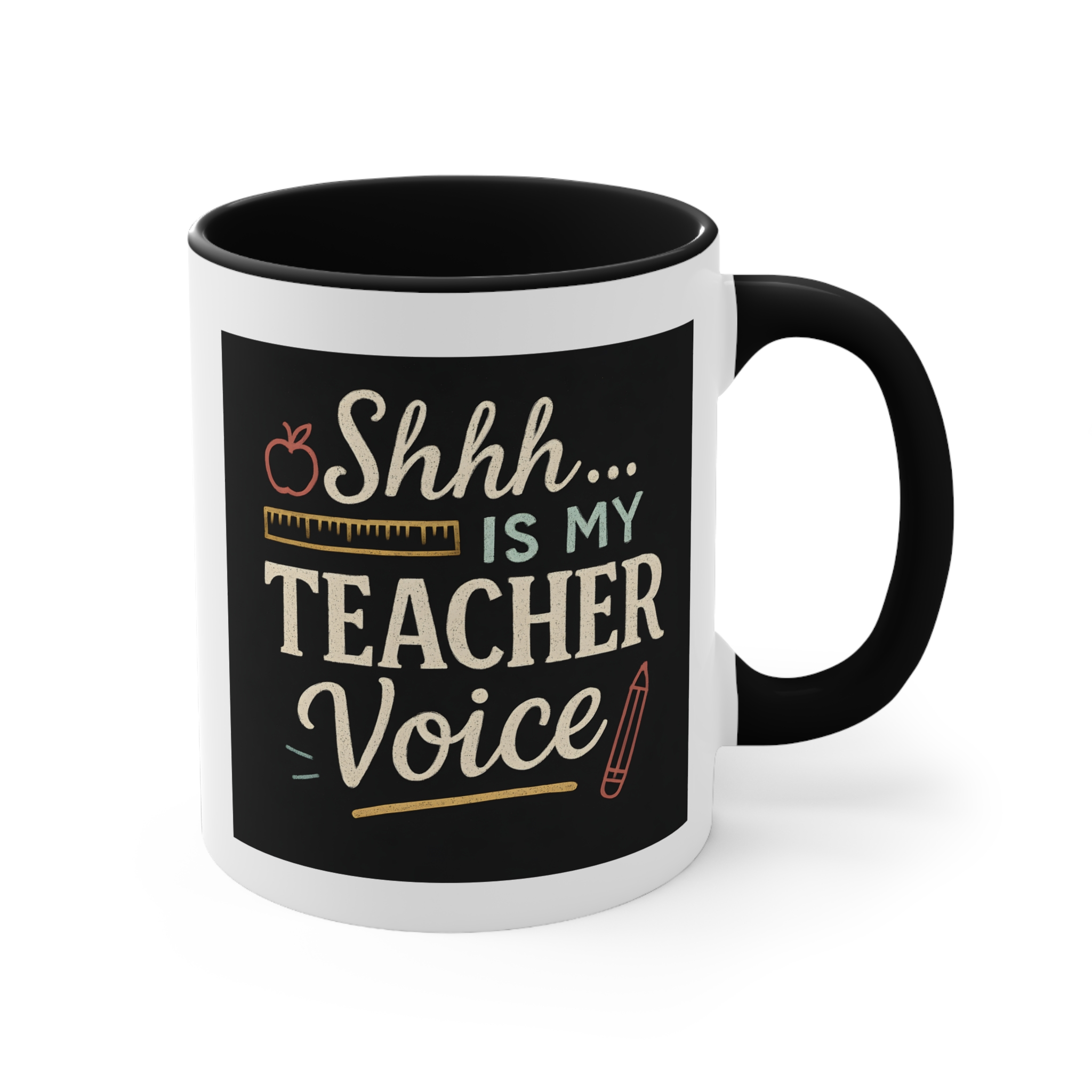 This sarcastic teacher voice mug perfectly captures that familiar classroom moment when the “teacher voice” comes out. Featuring the witty phrase “Shhh… Is My Teacher Voice” with playful classroom icons, it’s ideal for desks, staff rooms, or home coffee breaks.