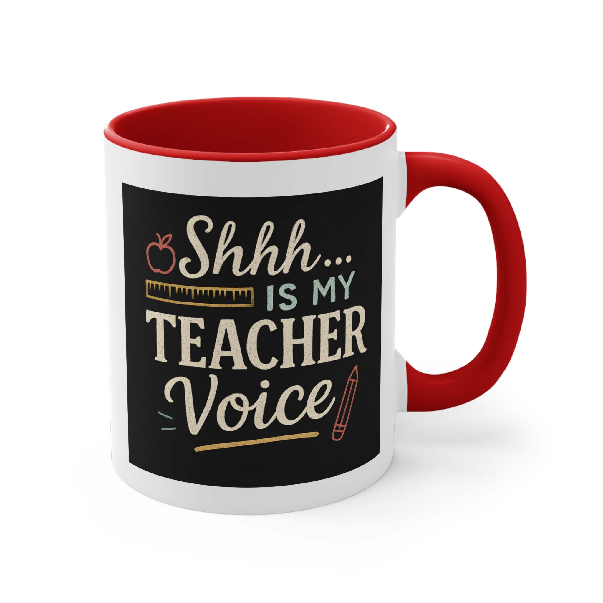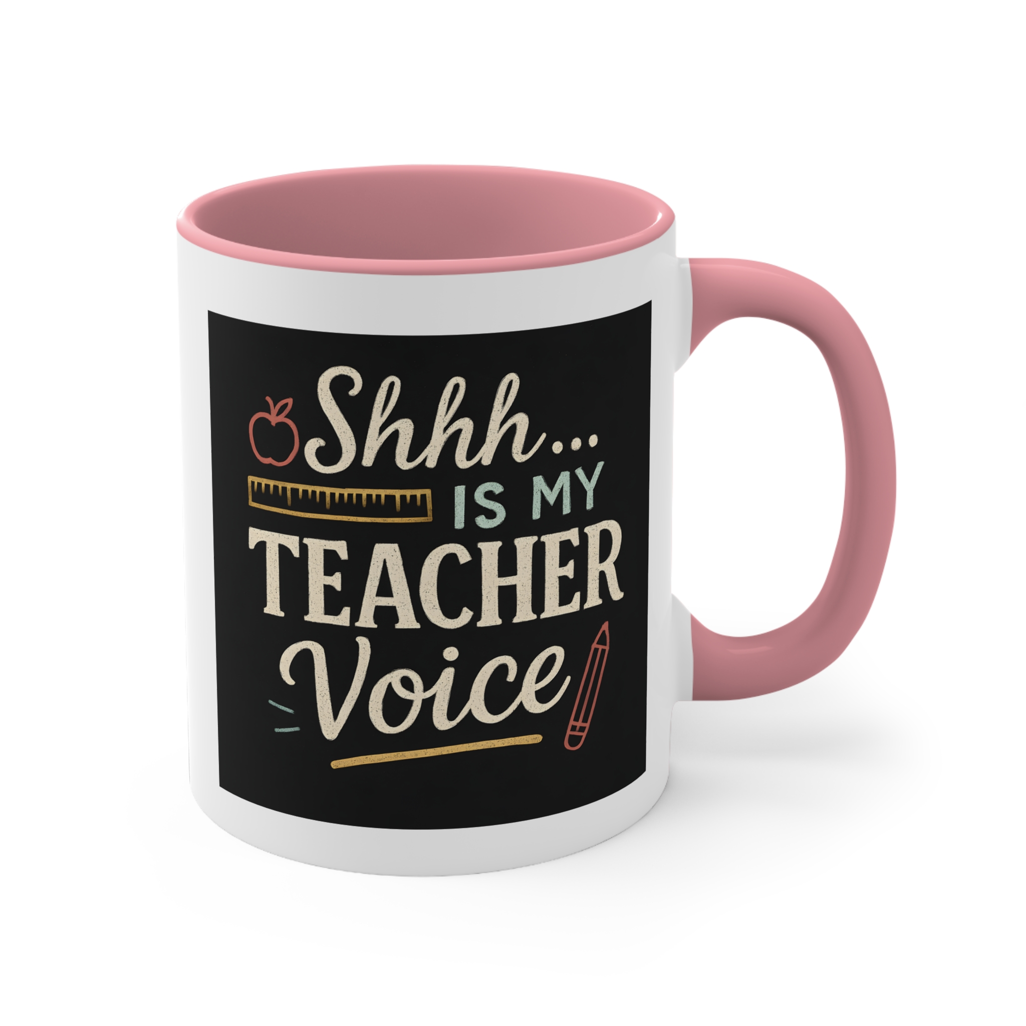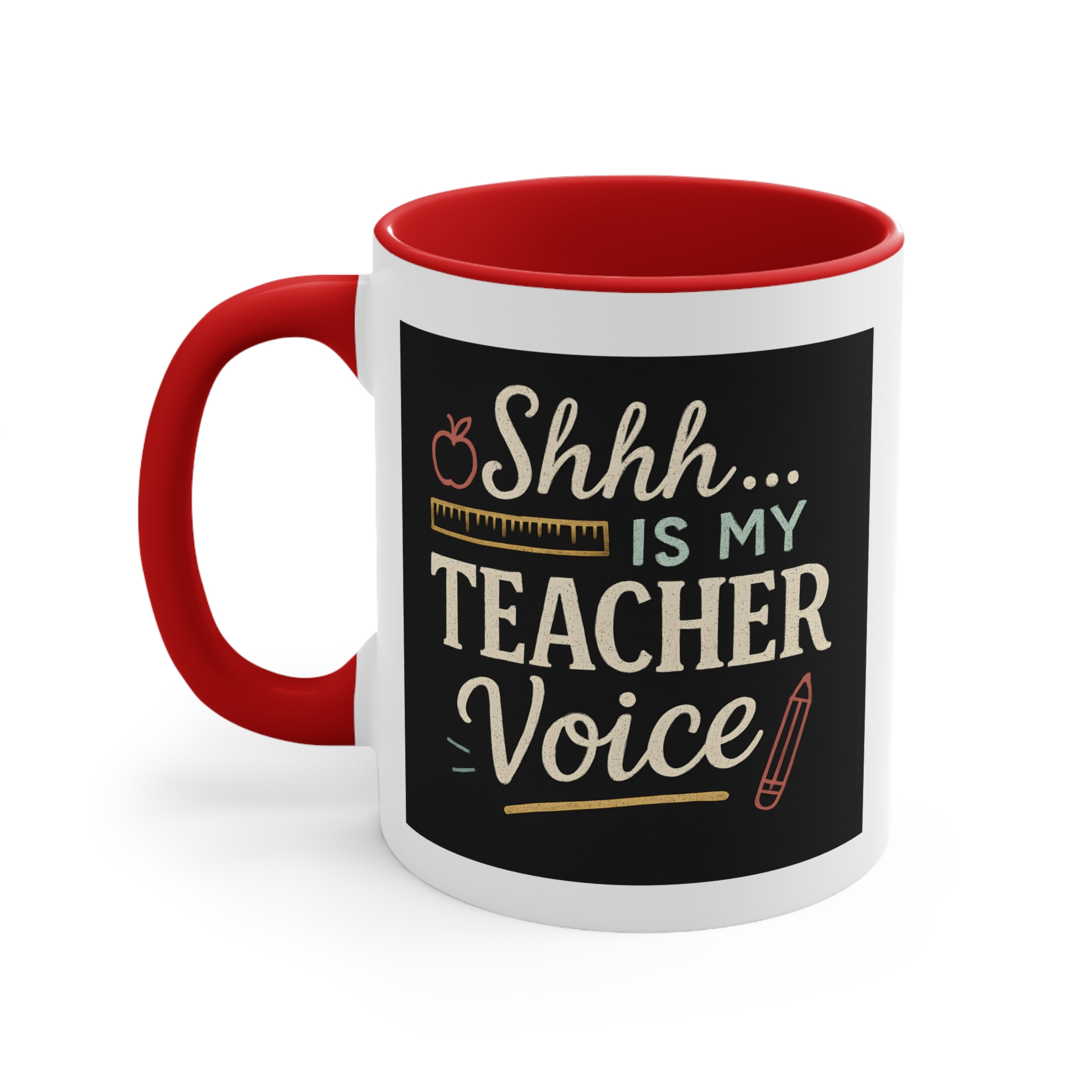This sarcastic teacher voice mug perfectly captures that familiar classroom moment when the “teacher voice” comes out. Featuring the witty phrase “Shhh… Is My Teacher Voice” with playful classroom icons, it’s ideal for desks, staff rooms, or home coffee breaks.