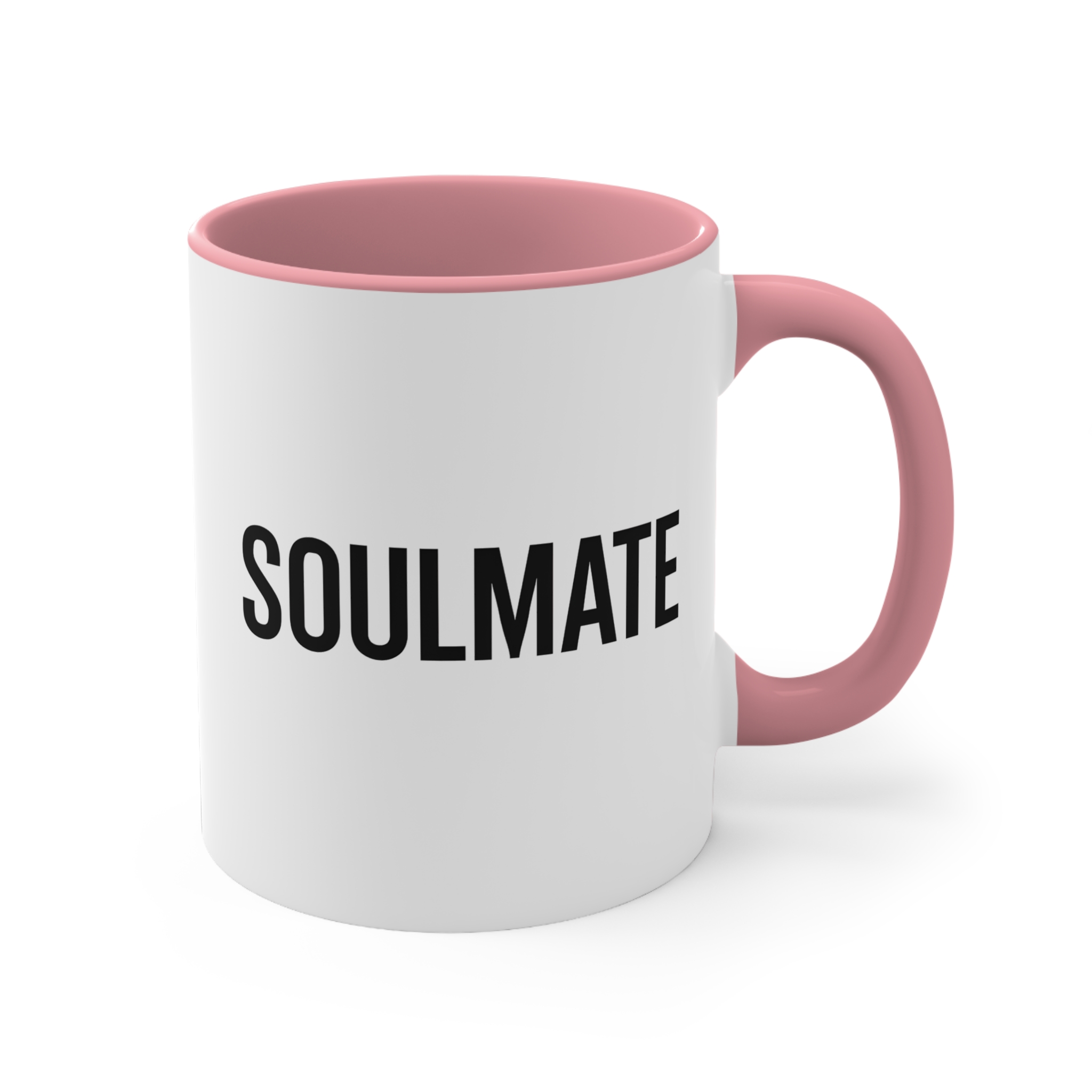 Celebrate true love with this soulmate text mug. 11oz ceramic mug, available in black, red, blue or pink handle, microwave safe, hand wash recommended.