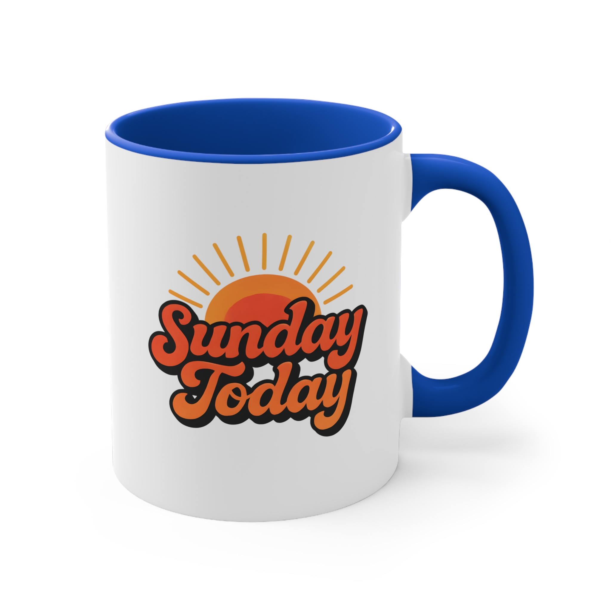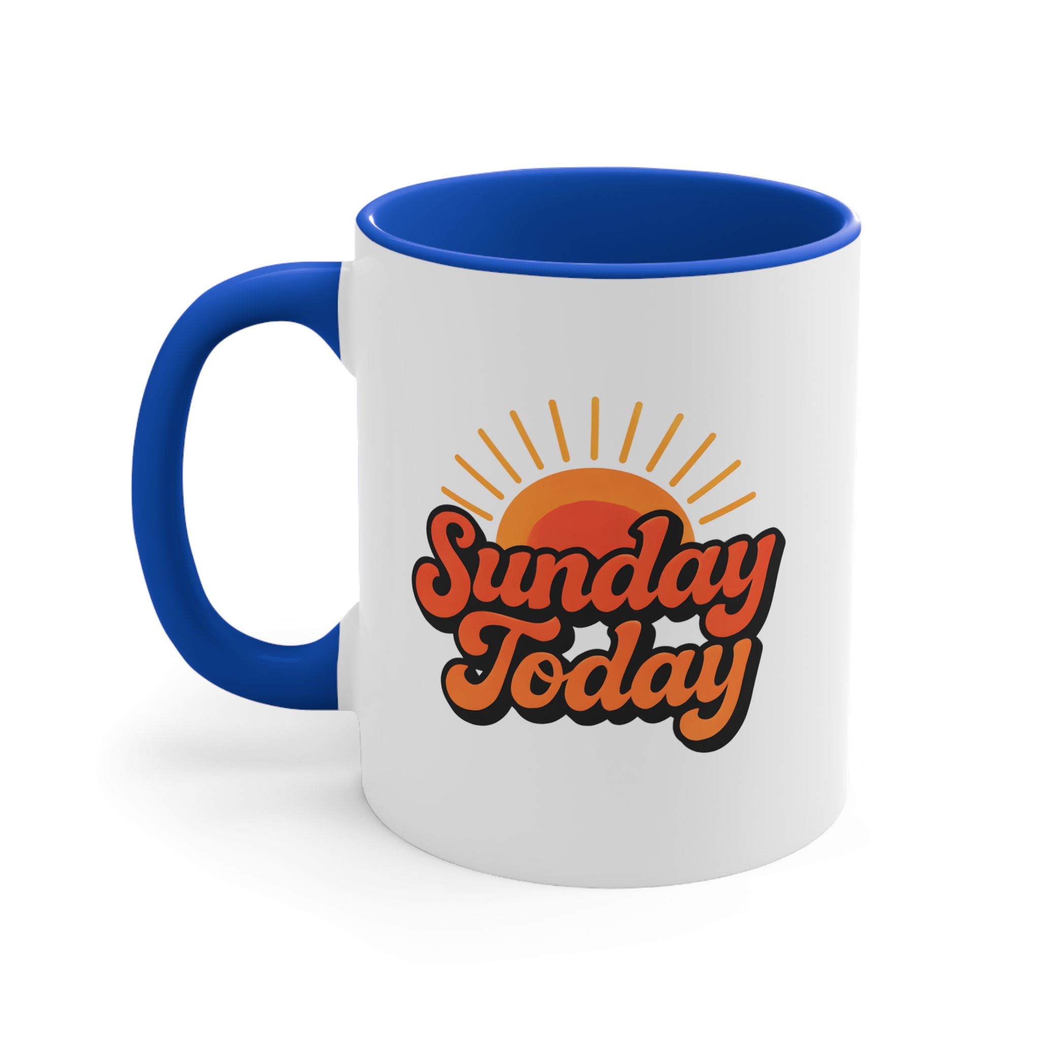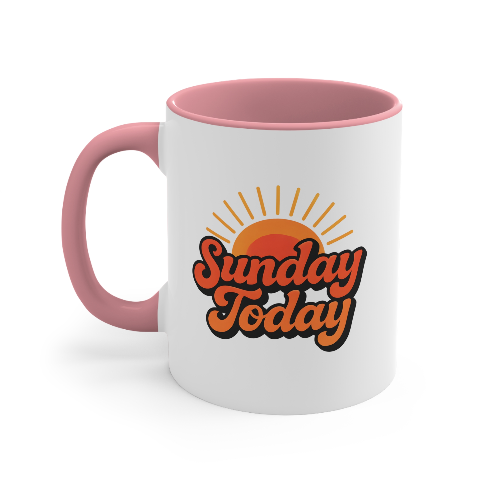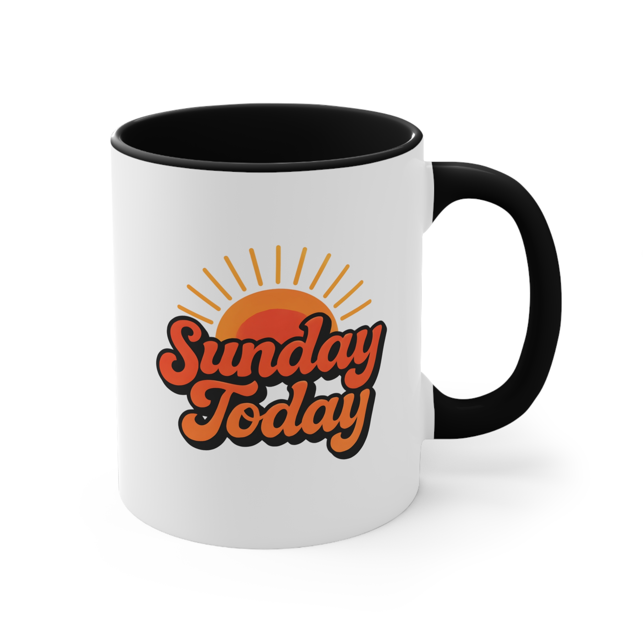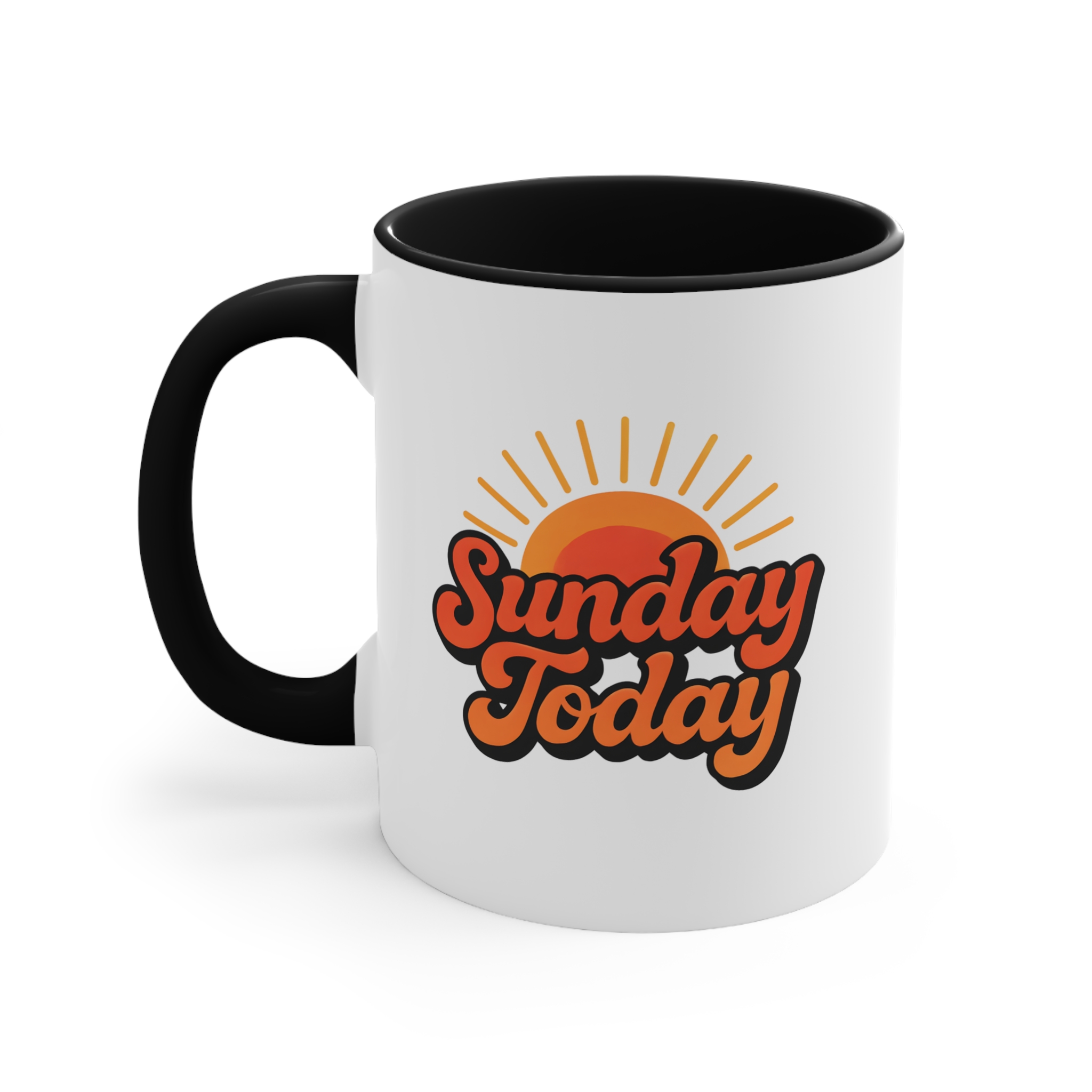 Sunday mug – 11oz ceramic, microwave safe, hand wash recommended, available in 4 colors.