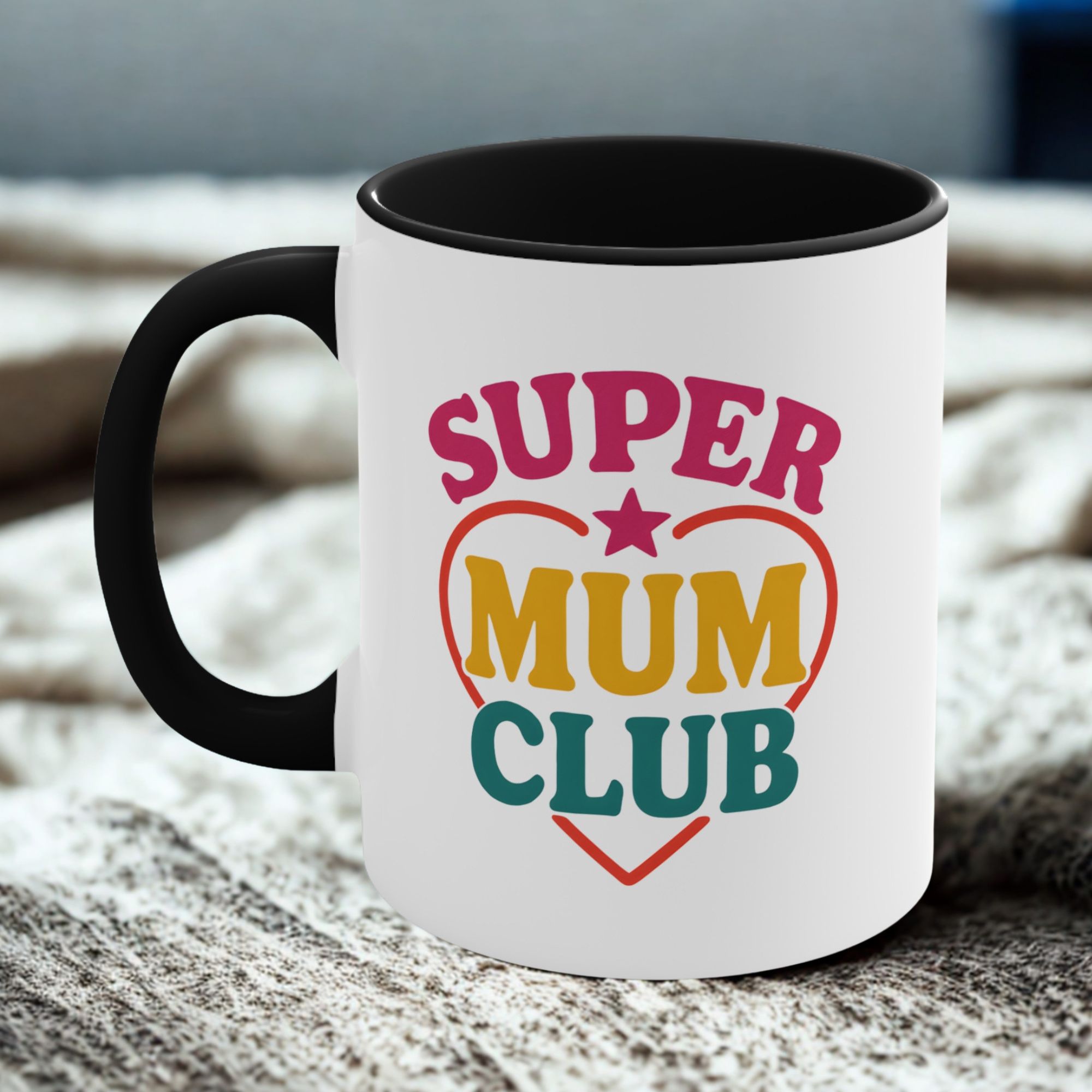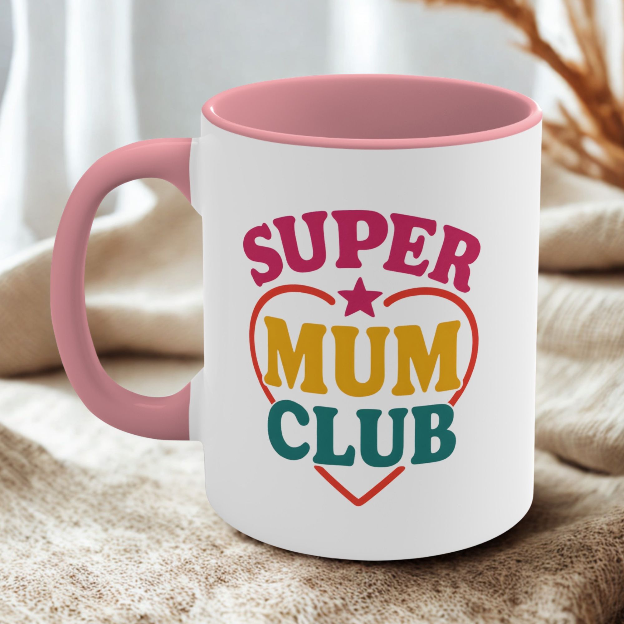 This “Super Mum Club” mug features bold colours and a fun design – perfect for mums who do it all.