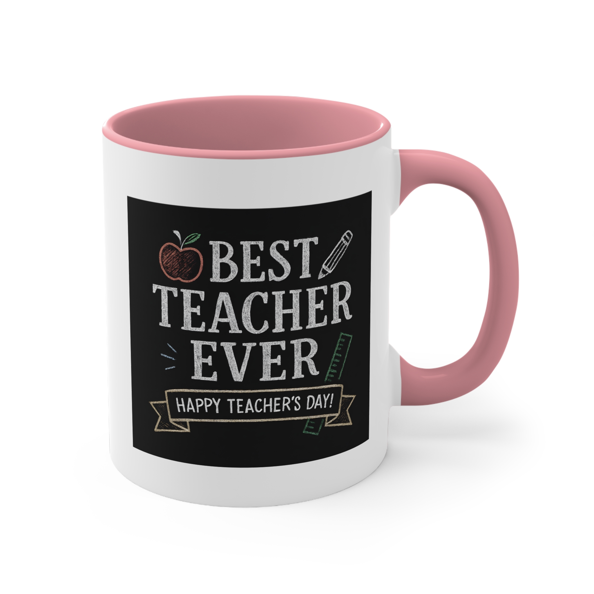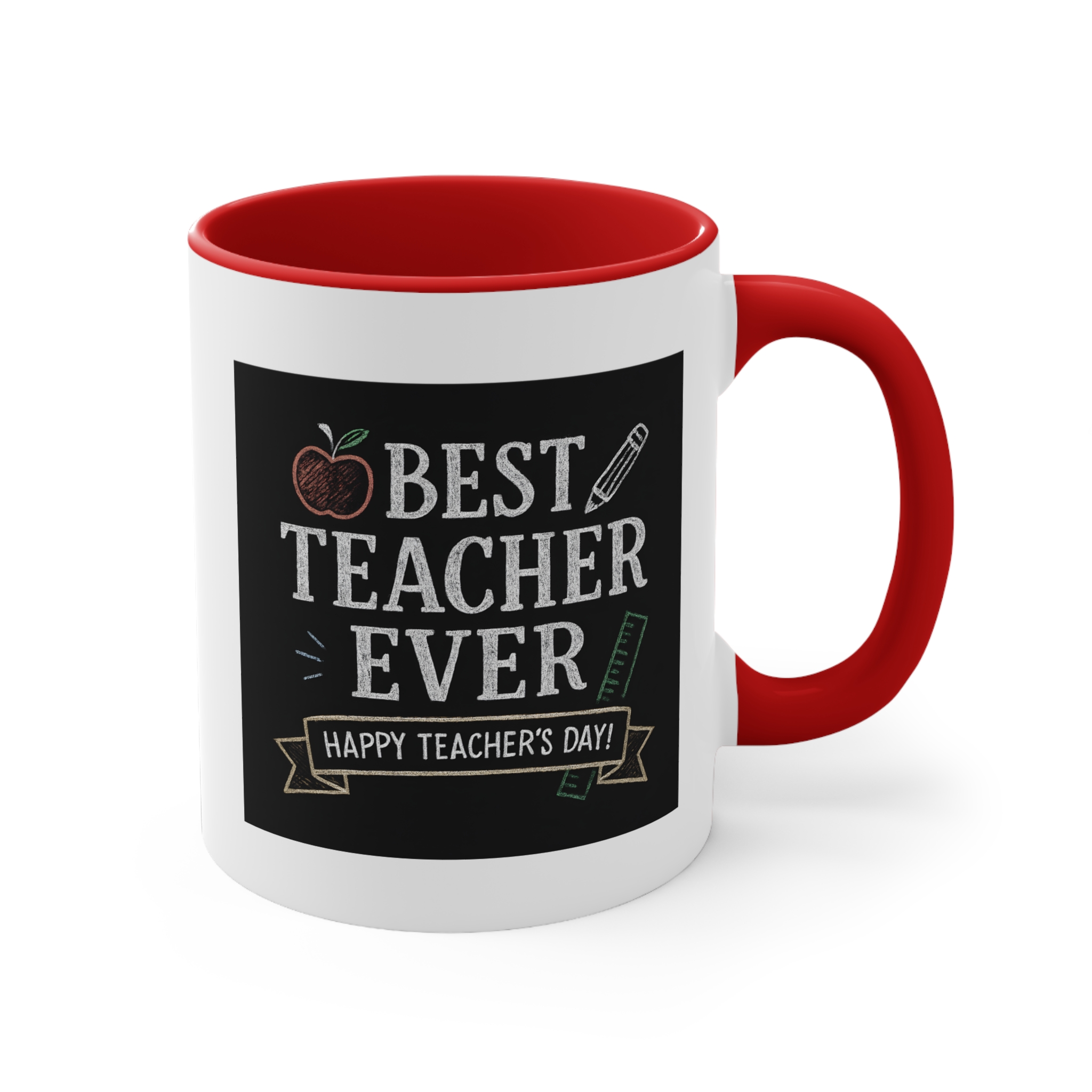 Teacher gift mug – 11oz ceramic, microwave safe, hand wash recommended, available in 4 colors.