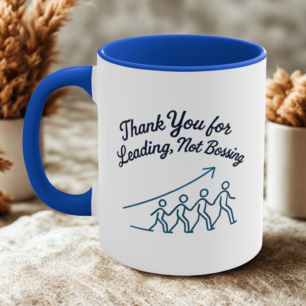 A clean and meaningful gift for any inspiring leader. This “Thank You for Leading, Not Bossing” mug is perfect for professional appreciation with heart.