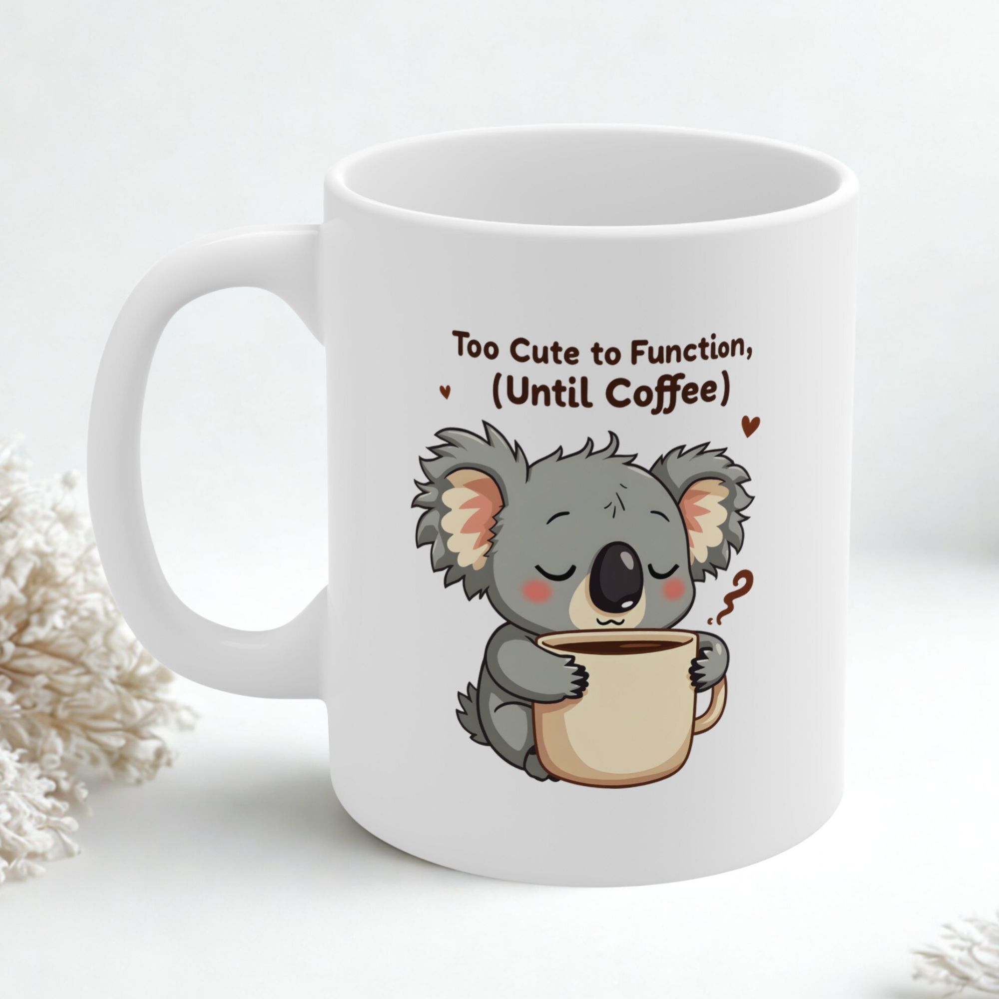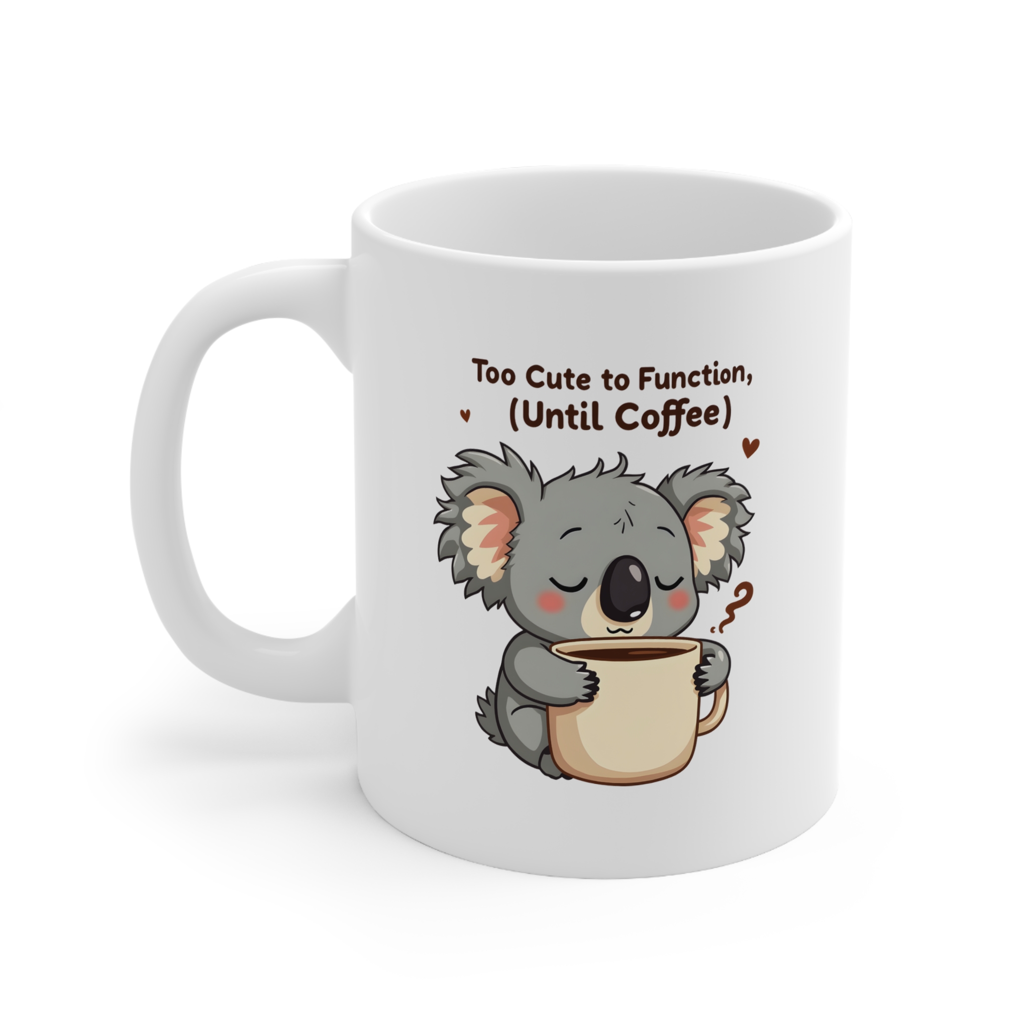 Embrace the chaos of mornings with this adorably relatable sleepy koala mug. With its fluffy bed-hair, droopy eyes, and oversized coffee cup clutched tight, this cartoon koala knows what it takes to get going—coffee, and lots of it. Steam curls playfully around the design, blending with the quirky quote to deliver a punch of Aussie charm and caffeine-fueled truth.