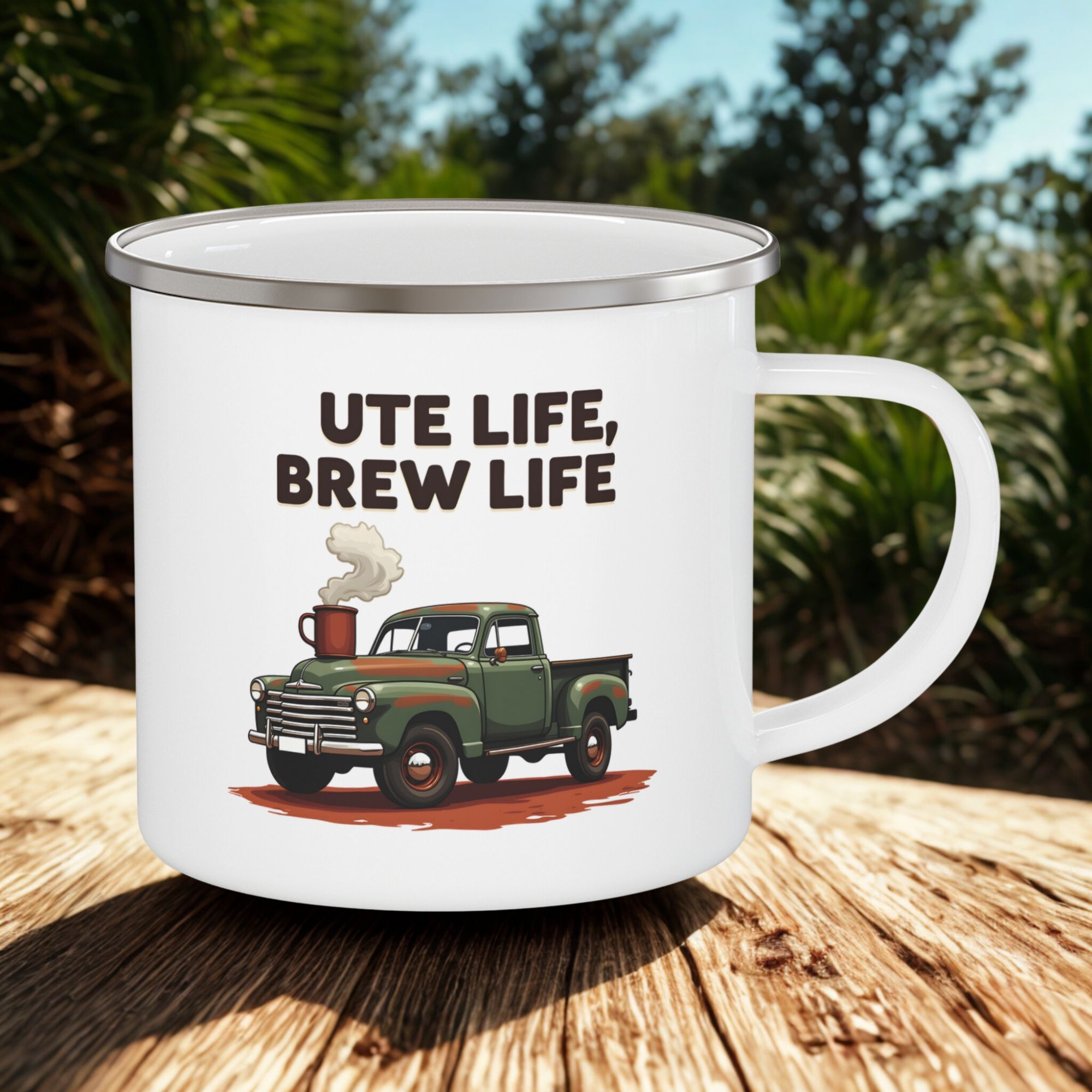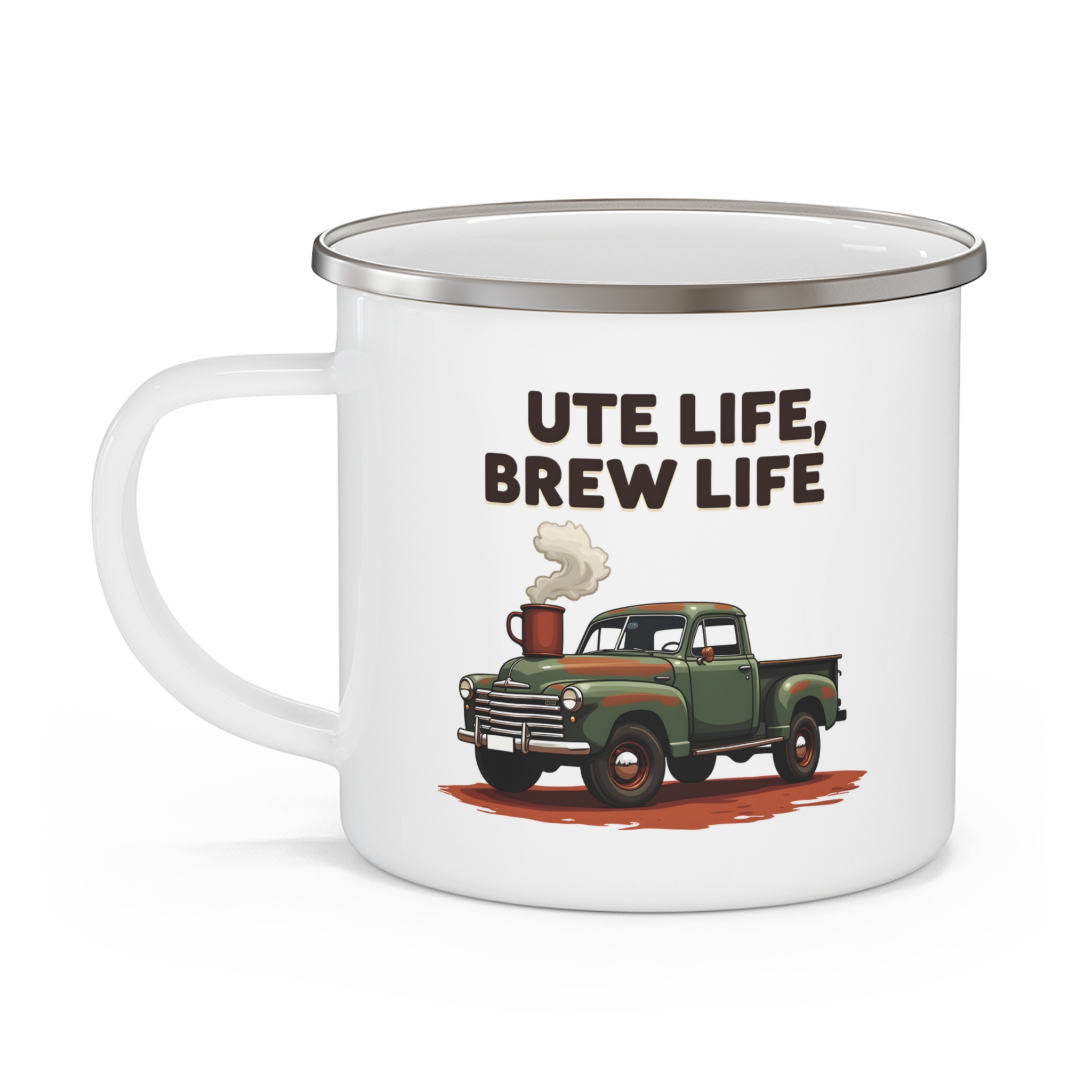 Start the day right with this ute life coffee mug. A rugged 12oz enamel mug for ute lovers and Aussie coffee fans.