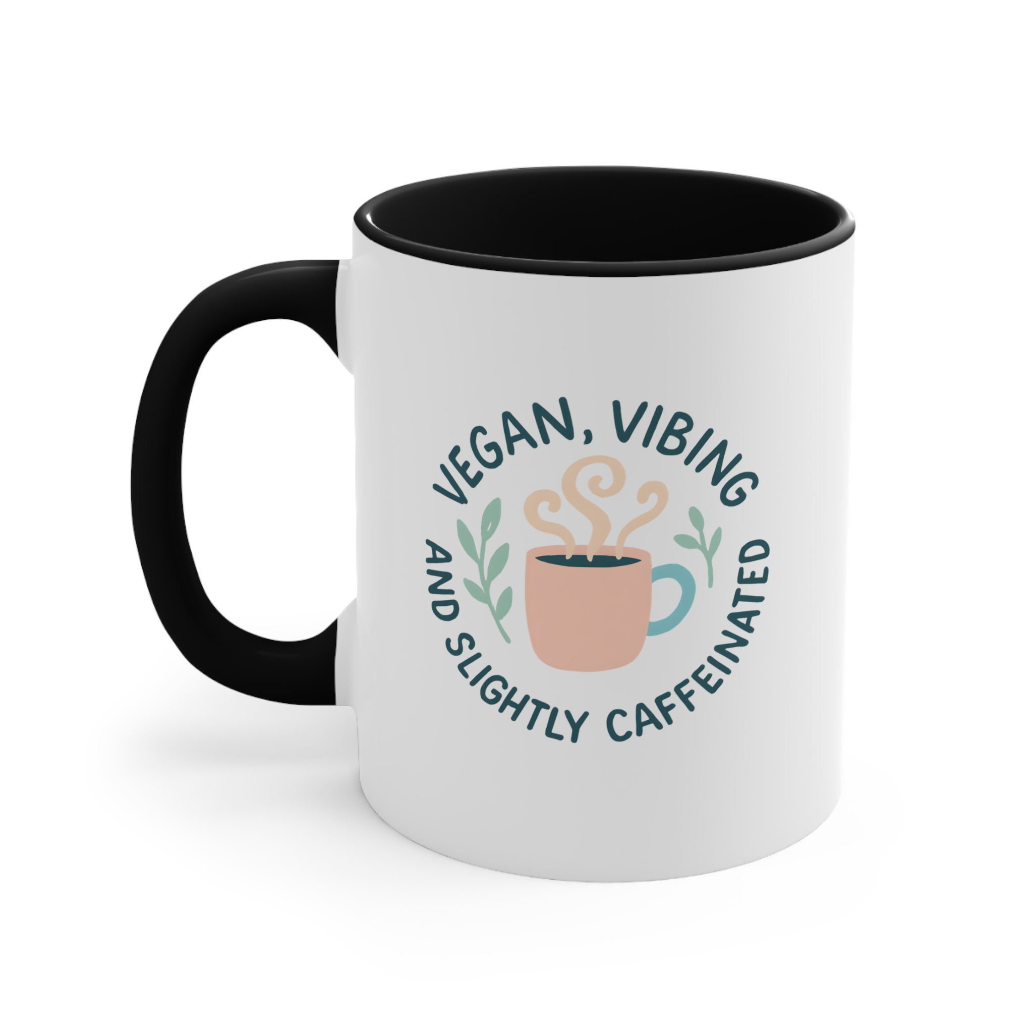 Start your day the plant-based way with this vegan coffee lover mug. Featuring a peaceful steaming cup surrounded by leaves and the phrase: