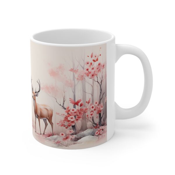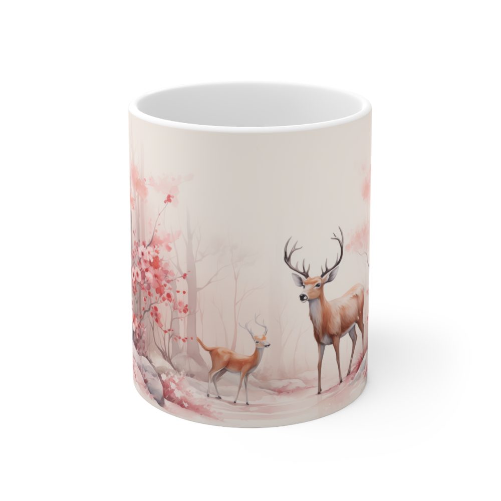 11oz ceramic mug with snow-dusted deer forest design