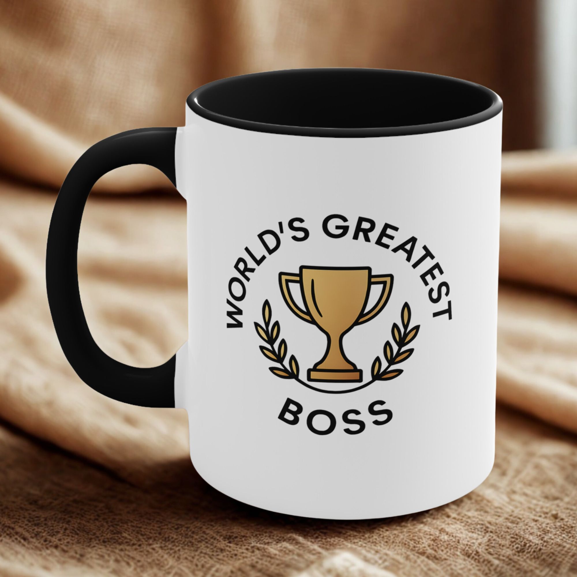 Celebrate leadership in style with this World’s Greatest Boss mug, featuring a bold trophy and laurel design that says it all. Perfect for showing appreciation to a manager, team leader, or business owner, this mug makes coffee breaks a reminder of their hard work and success.