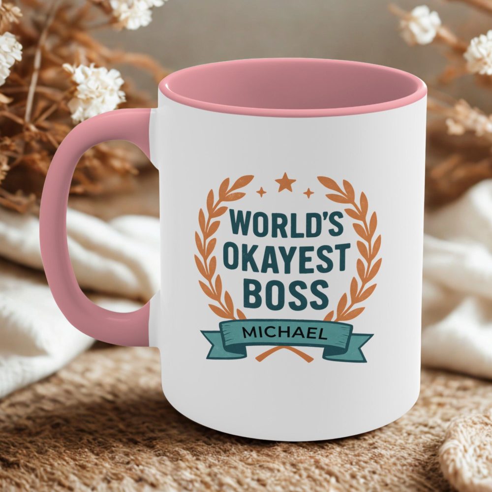 Custom World’s Okayest Boss Mug – Personalised Name Coffee Mug