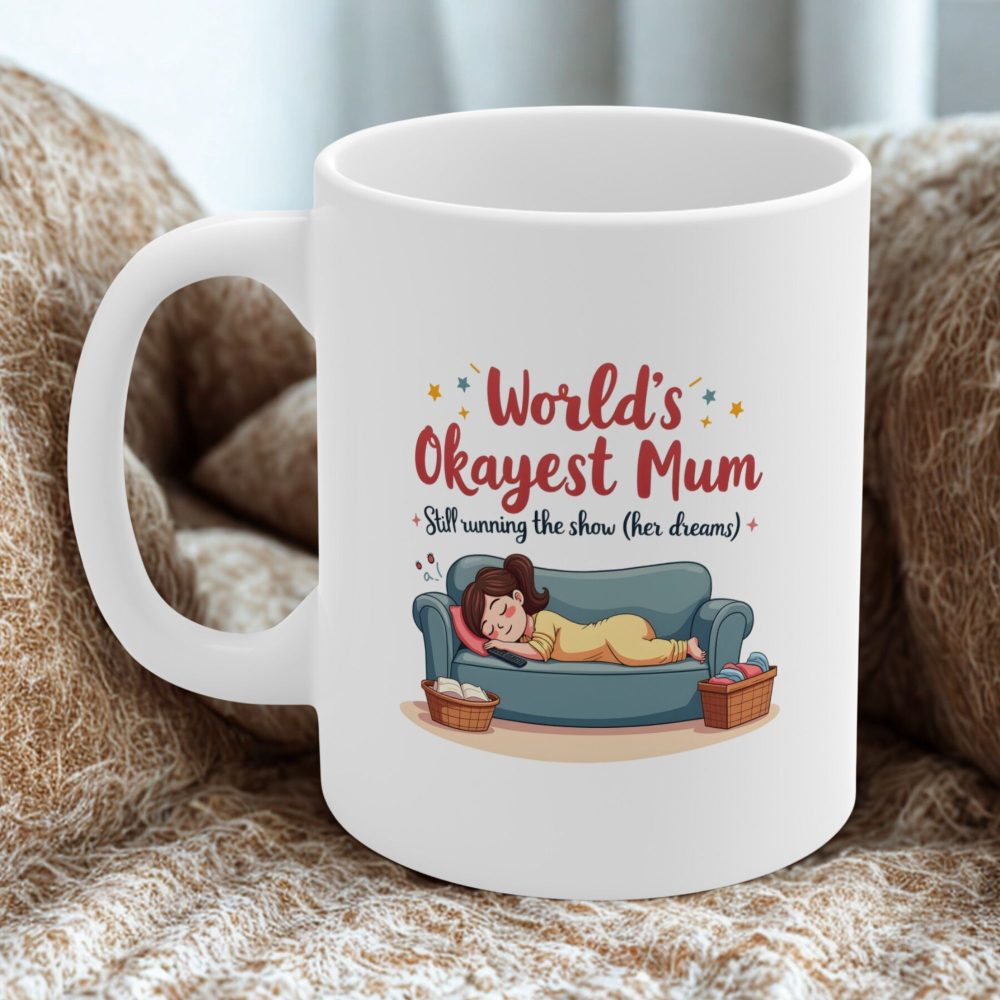 Celebrate motherhood in its most honest form — complete with unfinished laundry and naps that double as survival tools. Our World’s Okayest Mum Mug is a humorous and heartfelt tribute to every mum who literally runs the show… even if only in her dreams.