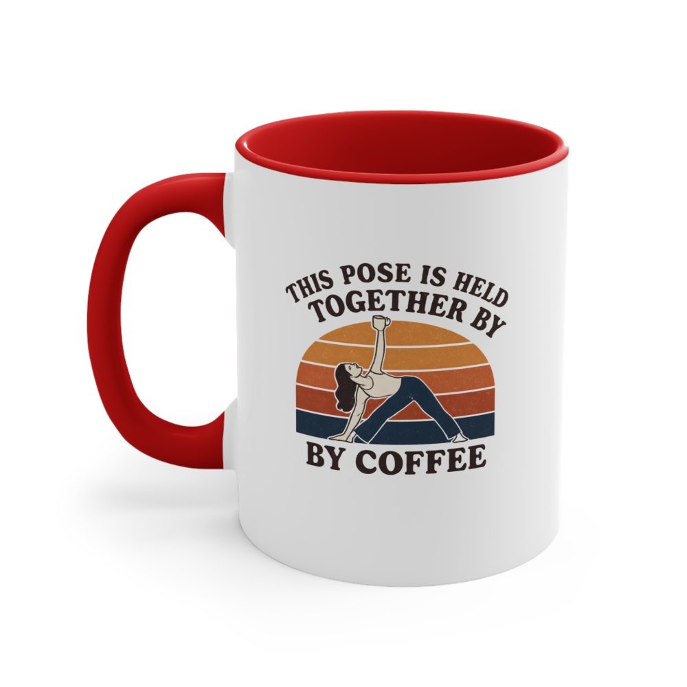 Breathe in coffee, stretch out stress. This yoga coffee mug funny design is perfect for caffeine-loving yogis who need a little brew to hold it all together. Featuring a strong yoga pose and a raised cup silhouette over a vintage sunset, it combines wellness, wit, and warm drinks in one sassy ceramic statement. Morning motivation has never looked so cool.