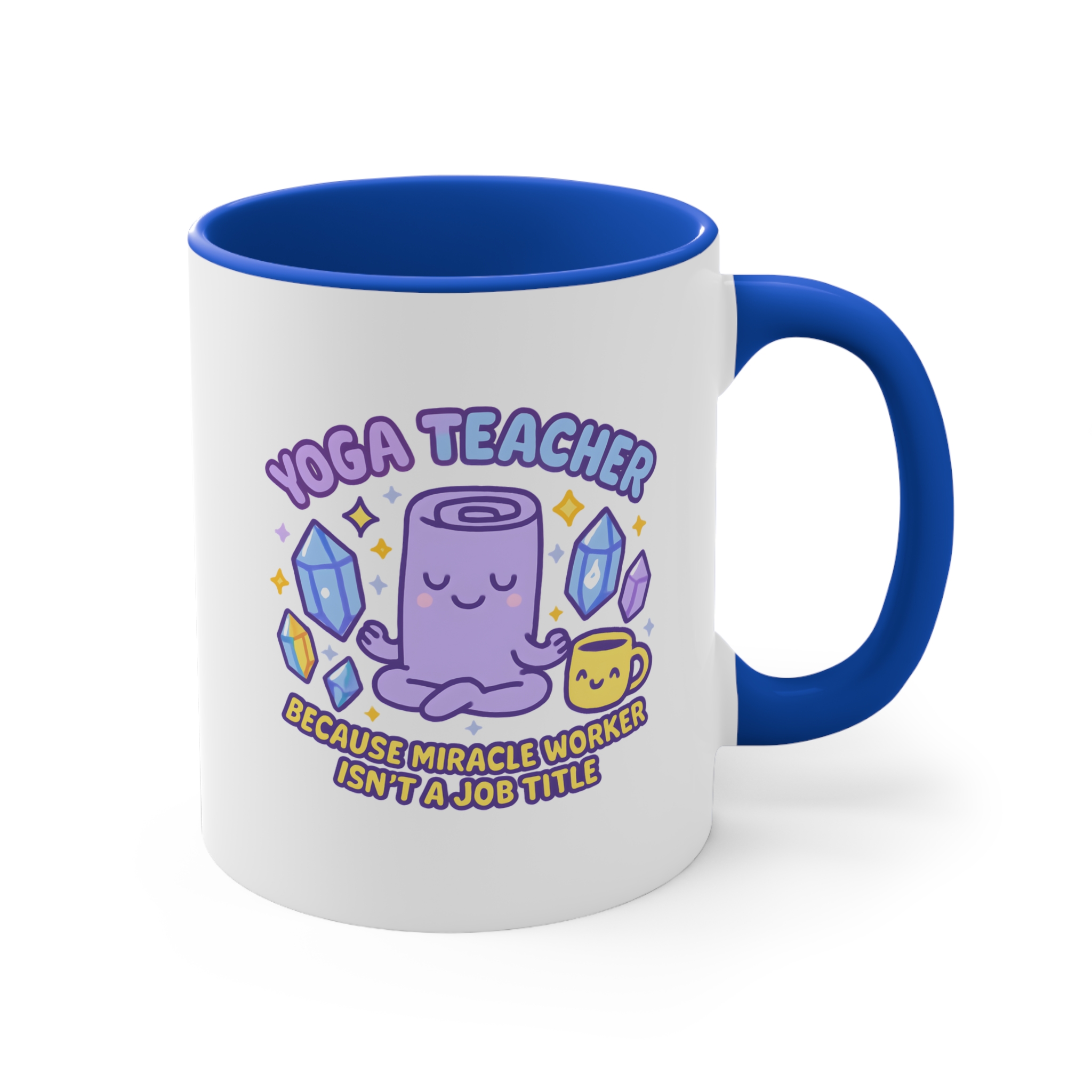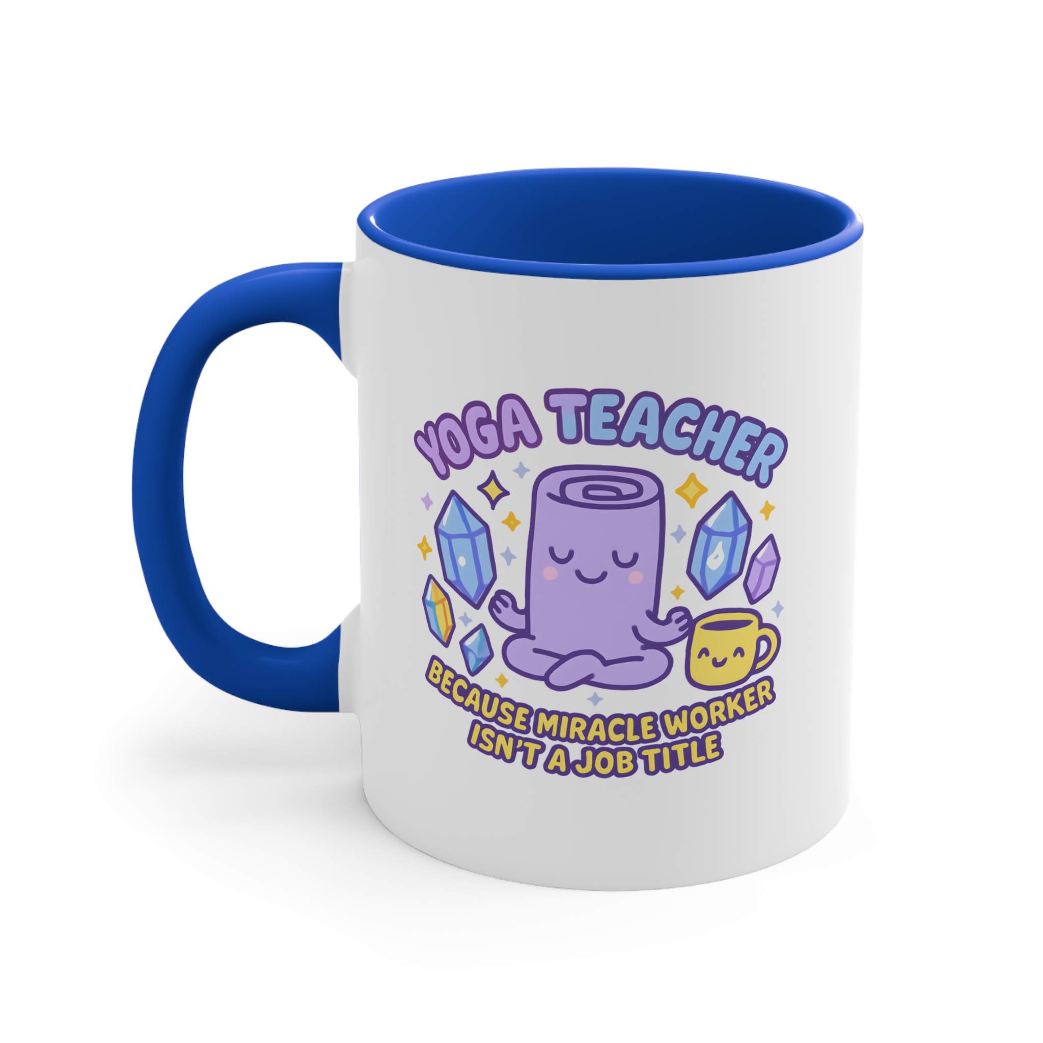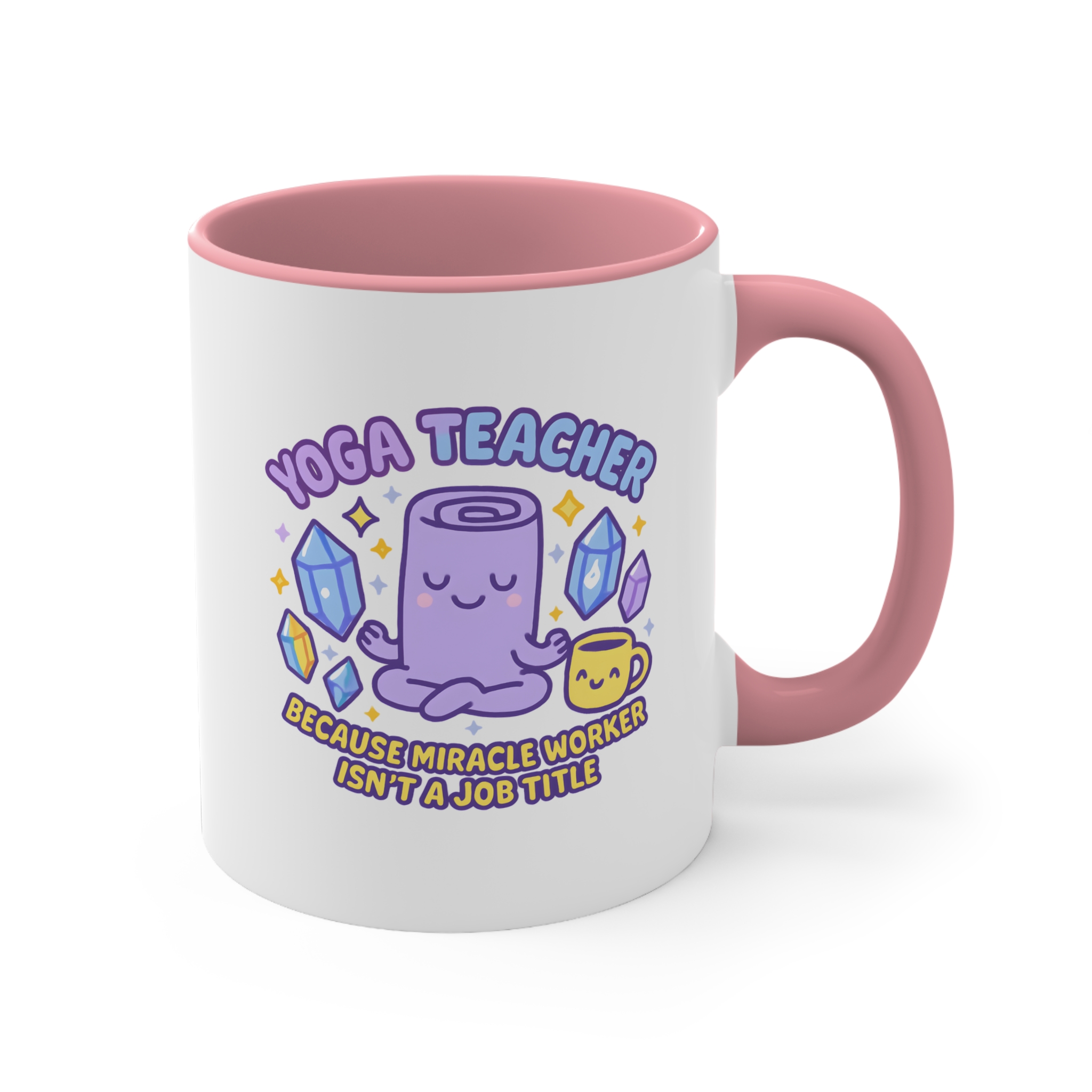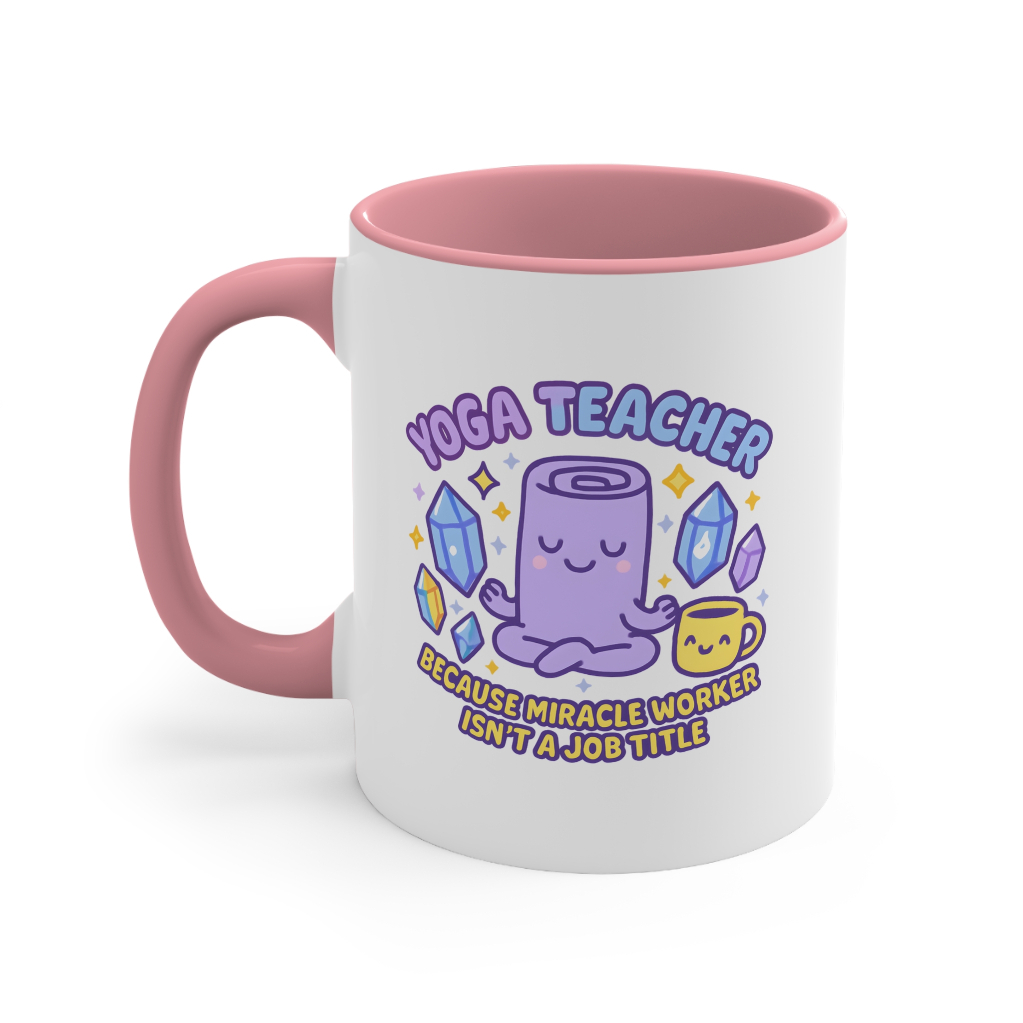 Add some playful positivity to your yoga teacher’s daily cuppa with this yoga teacher gift mug! Featuring a cheerful cartoon yoga mat in lotus pose, sparkling crystals, and a smiling mug, this design says it all: “Because Miracle Worker Isn’t a Job Title.”