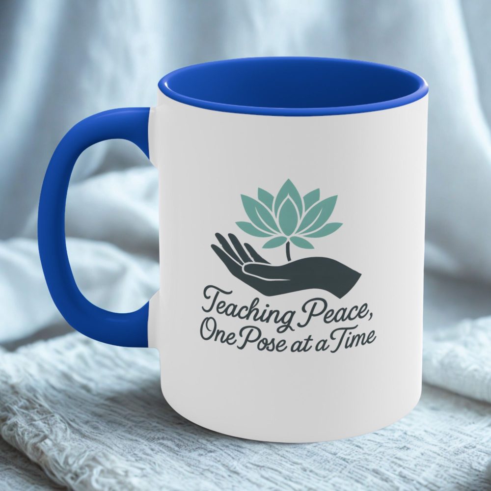 This inspirational yoga teacher mug features a lotus and guiding hand with the words “Teaching Peace, One Pose at a Time” — a perfect gift for calm, caring souls.