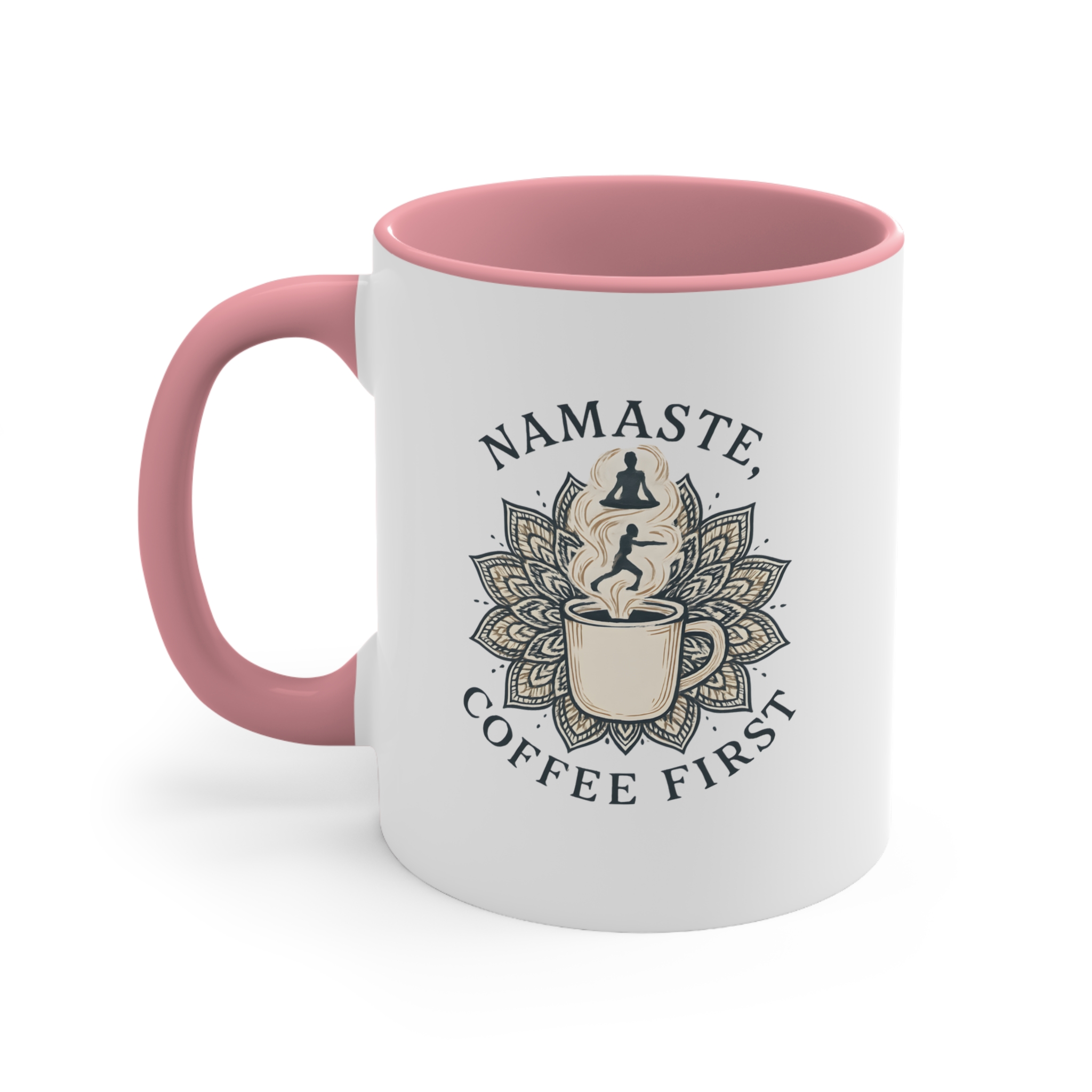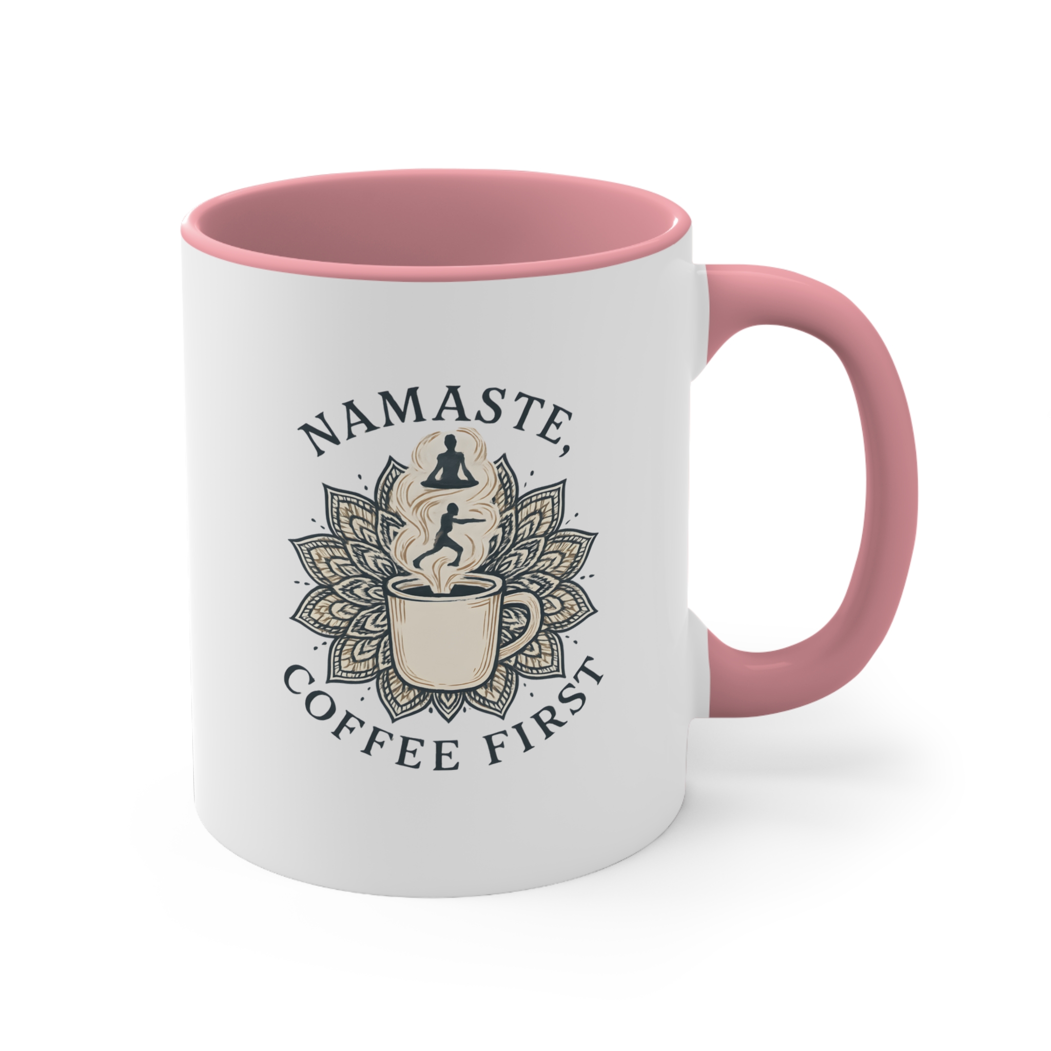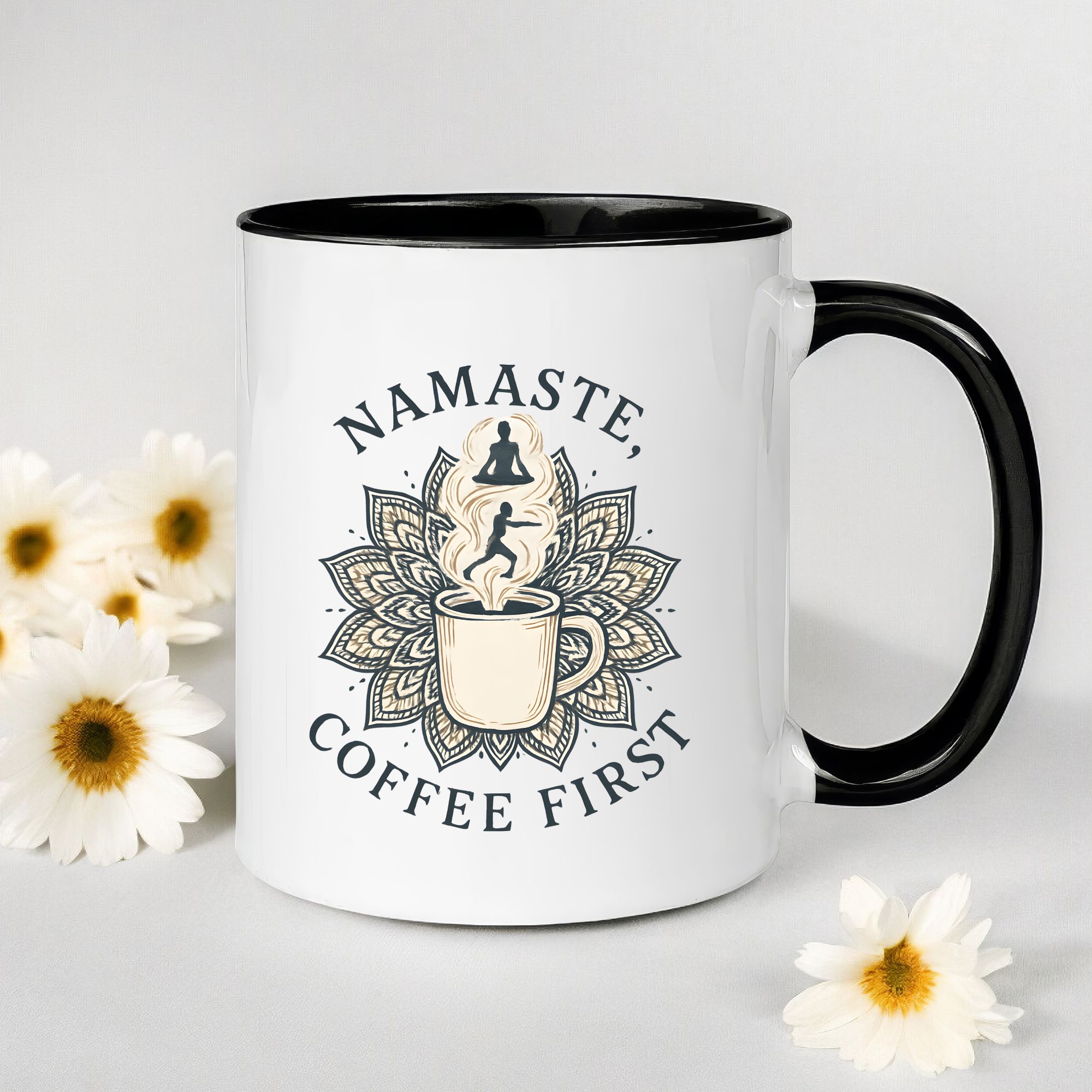 Yoga Themed Gift Mug – Namaste Coffee First with Mandala & Steam Pose Art